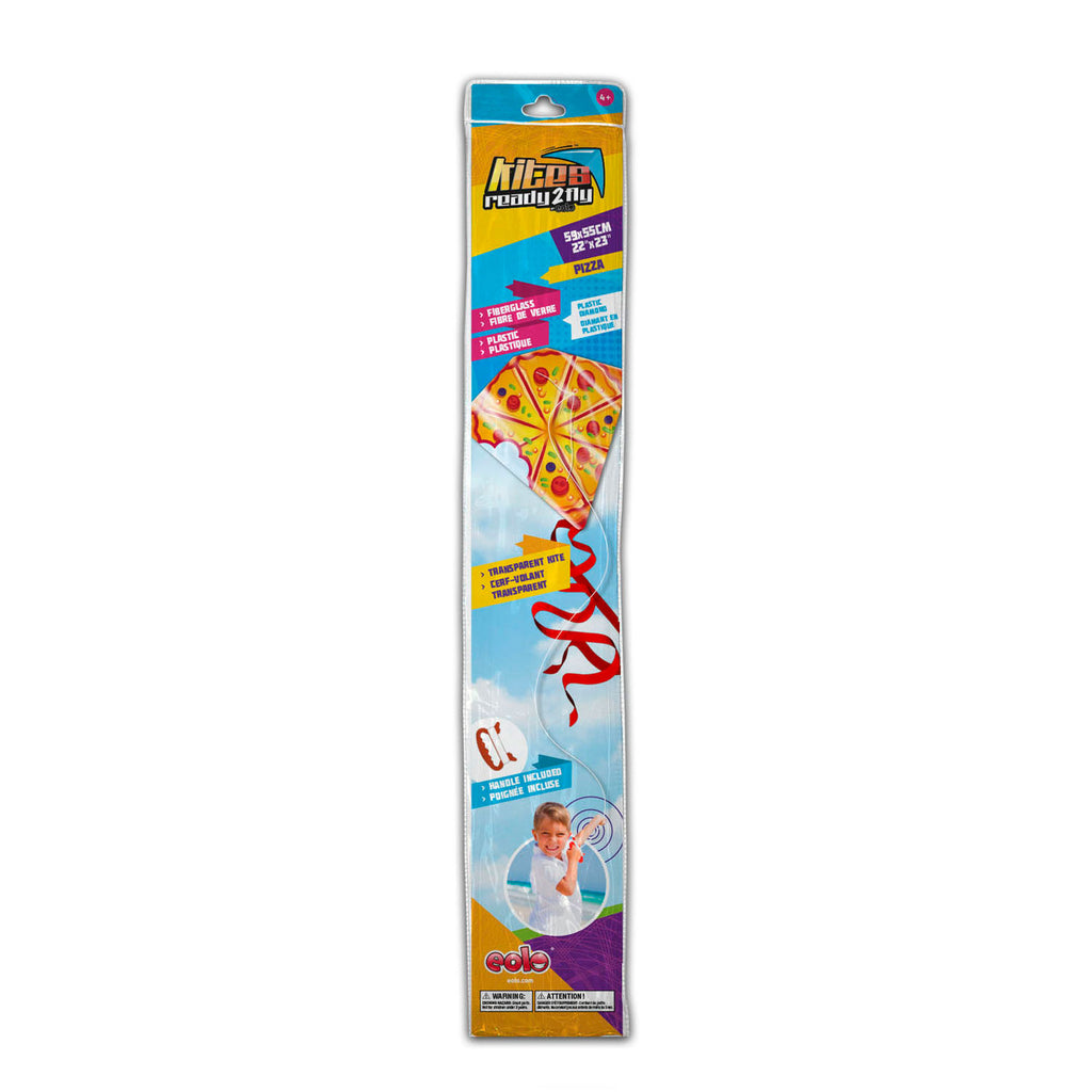 Verken het grote luchtruim met deze grappige vlieger van Eolo! Deze kindervlieger heeft een smakelijke opdruk van een pizza en is direct uit de verpakking klaar om mee te vliegen. De vlieger heeft een stevig glasvezelframe dat snel en gemakkelijk te bevestigen is. De vlieger is op transparant materiaal geprint voor een realistische ervaring! Inclusief handvat, lijn en staart. Afmetingen: 55 x 59 centimeter. Adviesleeftijd: 4+