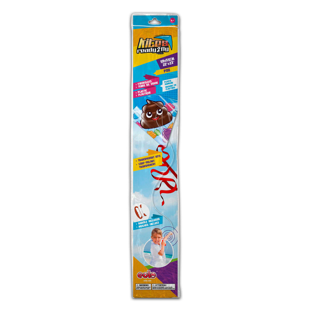 Verken het grote luchtruim met deze grappige vlieger van Eolo! Deze kindervlieger heeft een vrolijke opdruk van een poepgezichtje en is direct uit de verpakking klaar om mee te vliegen. De vlieger heeft een stevig glasvezelframe dat snel en gemakkelijk te bevestigen is. De vlieger is op transparant materiaal geprint voor een realistische ervaring! Inclusief handvat, lijn en staart. Afmetingen: 55 x 59 centimeter. Adviesleeftijd: 4+