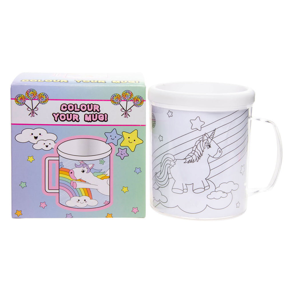 Deze set bevat drie kleurplaten waarmee je je eigen plastic mok kunt kleuren. De kleurpotloden zijn exclusief en moeten apart worden samengesteld.