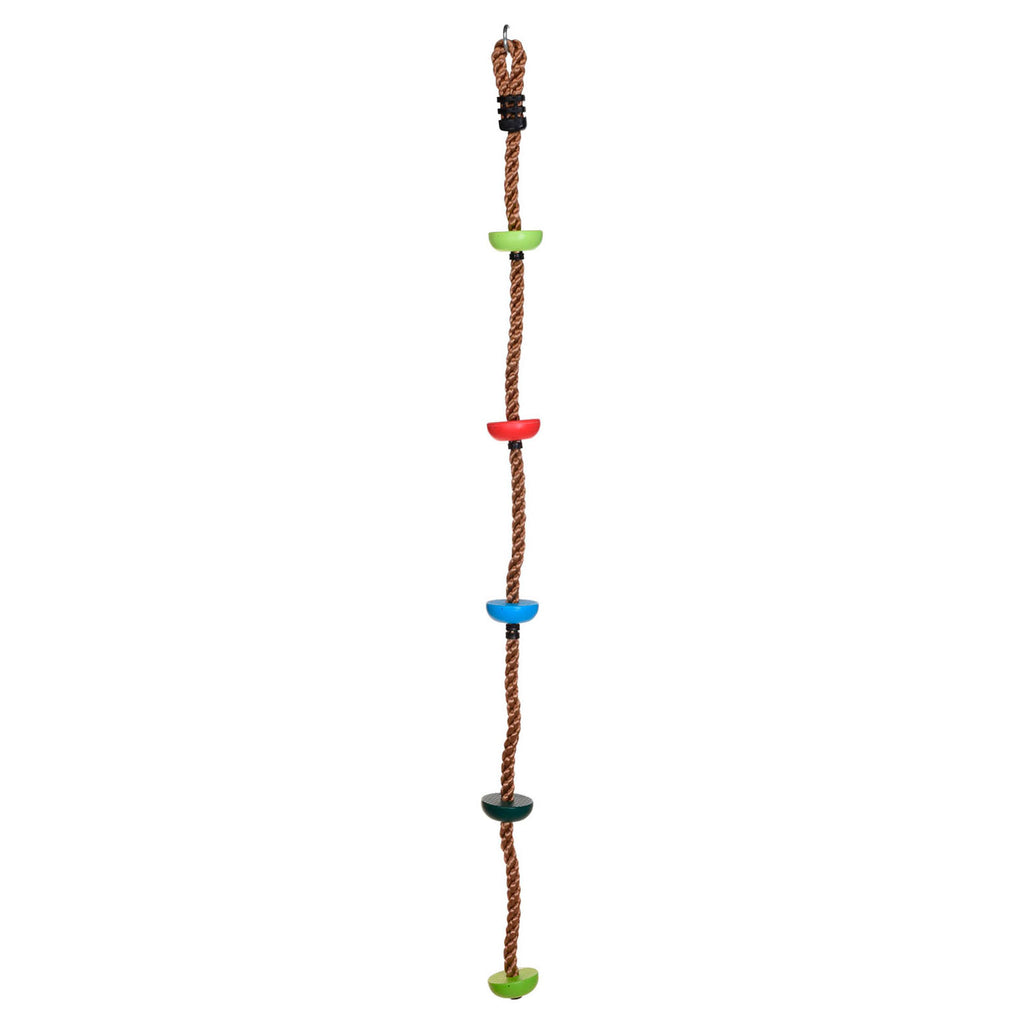 Dit touw van 200 cm is ideaal als opstap naar een boomhut, klimboom of voor op je kamer. Je kunt hem ook leuk ophangen bij de schommel. Kinderen kunnen aan dit touw hun kracht en behendigheid trainen. Het touw heeft enkele voetsteunen die het klimmen gemakkelijker maken. Met de metalen ring maak je het touw gemakkelijk vast.