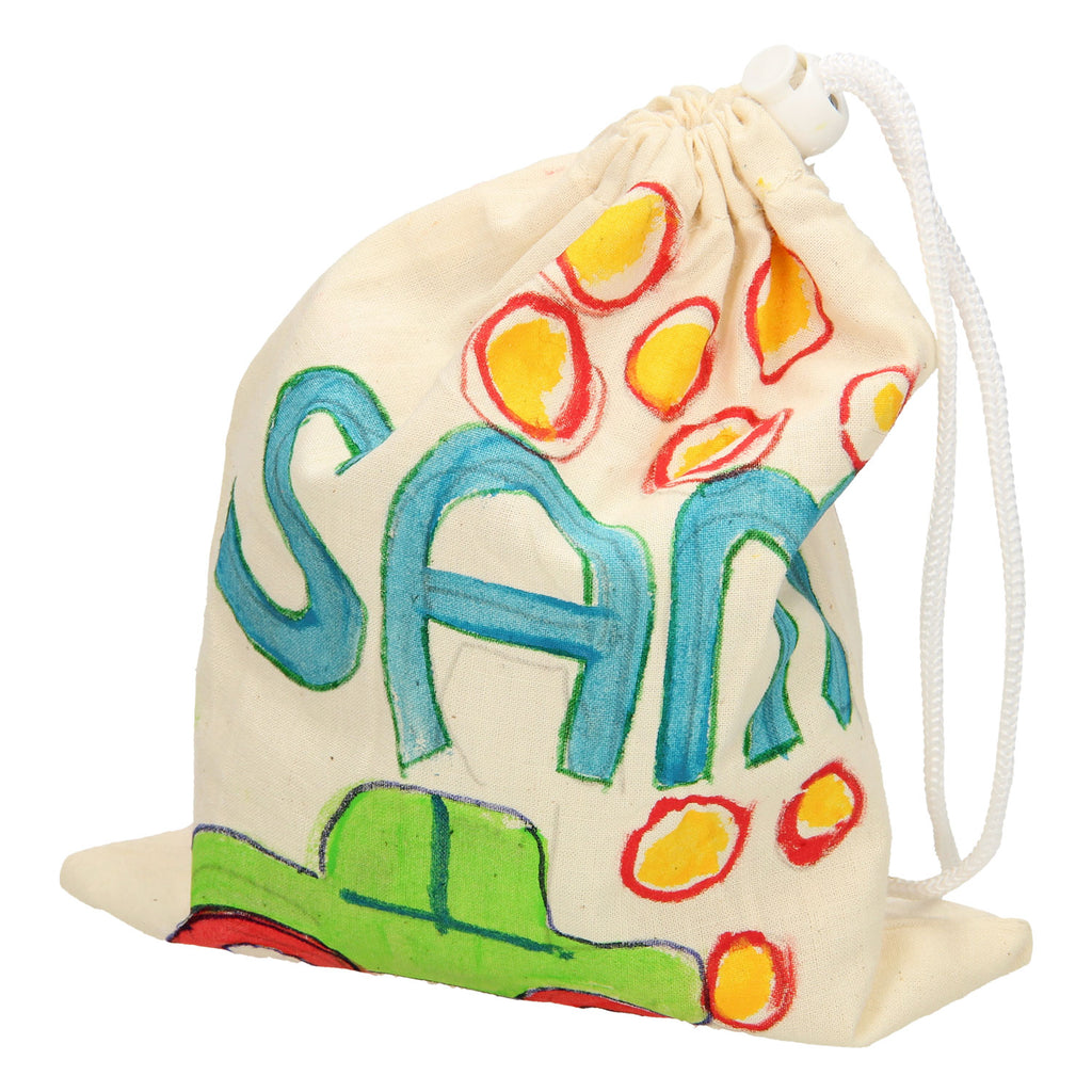 Stevige blanco katoenen zakje (linnen tas) om zelf kleuren van de stof met textielstiften of textielverf. Ook handig als strooigoedzakje voor de Sinterklaasintocht.