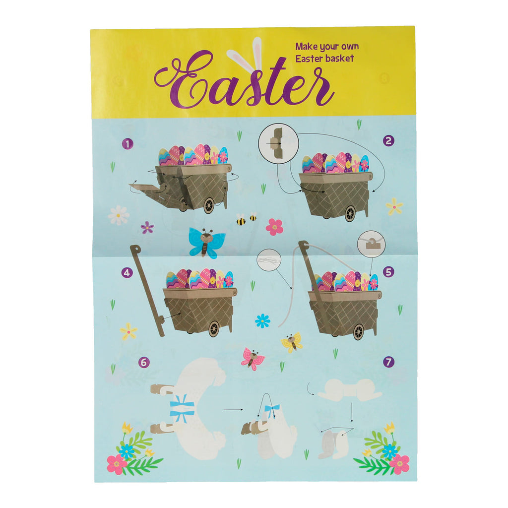Met dit knutselpakket kun je je eigen elektronische paasmandje maken voor Pasen. Het pakket bevat instructies, 4 componenten constructieplaten, een stickervel en touw. Het paasmandje heeft afmetingen van 50 x 8 x 25 centimeter. Let op: dit product is niet geschikt voor kinderen onder de 3 jaar oud.