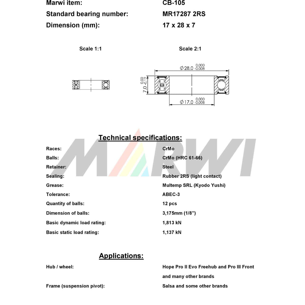 • Frame (veringspil): Salsa en enkele andere merken Union Kogellager CB-105 MR17287 2RS (17x28x7)