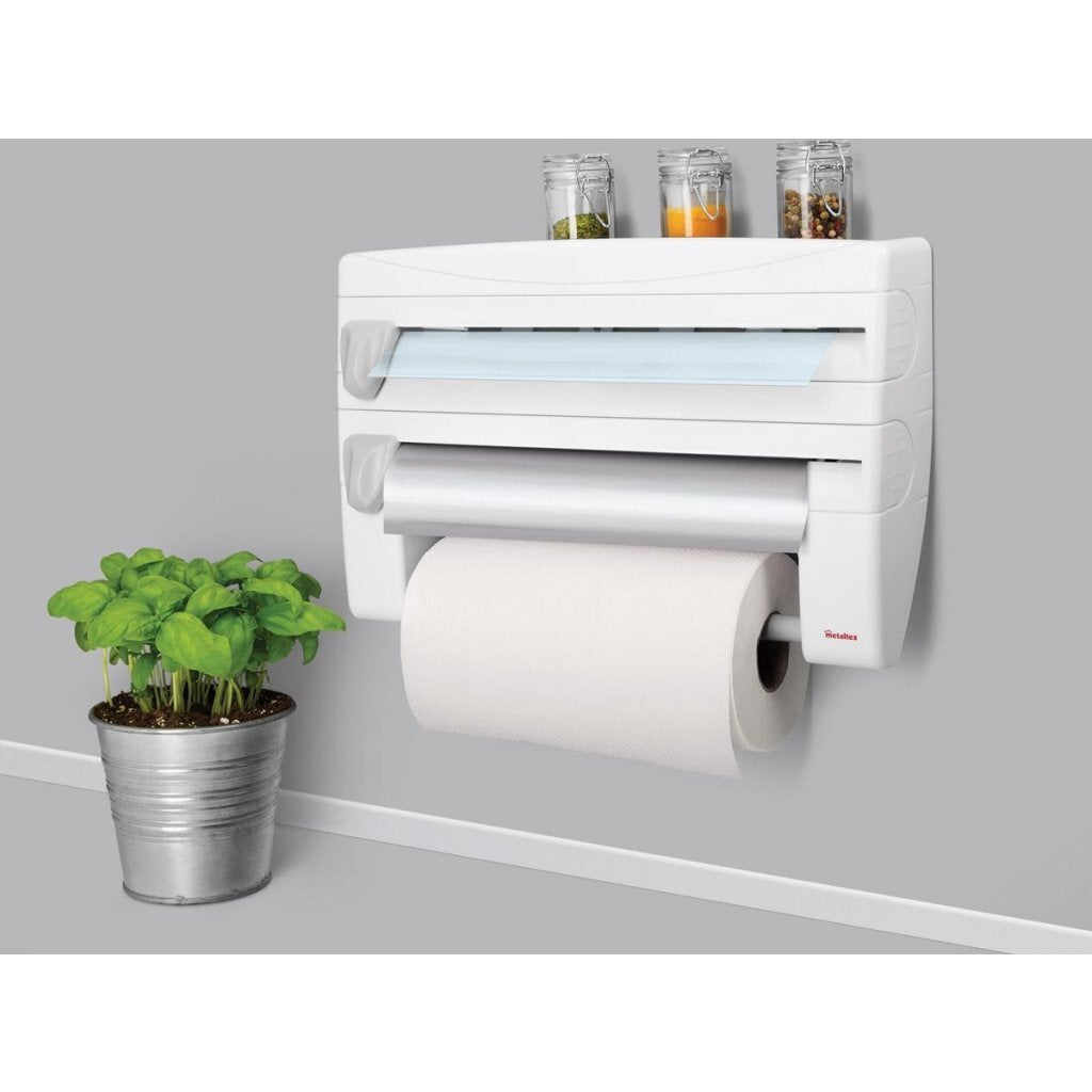 De Roll 'n roll van Metaltex is een keukenrolhouder die plaats biedt aan 3 verschillende rollen: keukenpapier, aluminiumfolie en huishoudfolie.