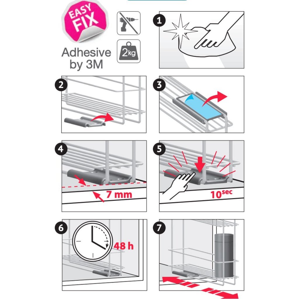 De slanke ruimtebesparende kruidenorganiser is compact ontworpen en ideaal om in je kast te samenstellen. Dit kruidenrek kan met behulp van een sterke kleefstrip of met schroeven (niet inbegrepen) in een kast worden gemonteerd. Het frame beschikt over een Polytherm-coating, die antistatisch, roest- en krasbestendig is en ook eenvoudig schoon te maken is.