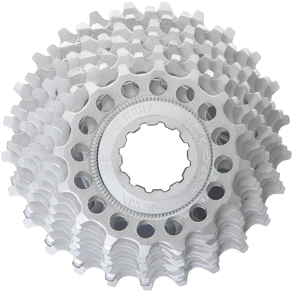 De Miche PRIMATO Cassette is een hoogwaardig fietsonderdeel dat zorgt voor soepele en nauwkeurige schakelingen. Gemaakt van duurzaam staal, is deze cassette ontworpen voor gebruik met Shimano systemen. Met een tandwielverhouding van 16-25 biedt deze cassette de perfecte balans tussen snelheid en kracht. De zilveren kleur verlicht een stijlvolle uitstraling toe aan je fiets. Upgrade je schakelsysteem met de Miche PRIMATO Cassette. Productspecificaties: - Artikelnummer: 1514CI0000000 - EAN: 8056772572636 - Merk: Miche - Model: PRIMATO - Materiaal: Staal - Netto gewicht (g): 245 - Aantal tandwielen: 10 - Geschikte body: Shimano - Tandwielverhouding: 16-25 - Kleur: Zilver