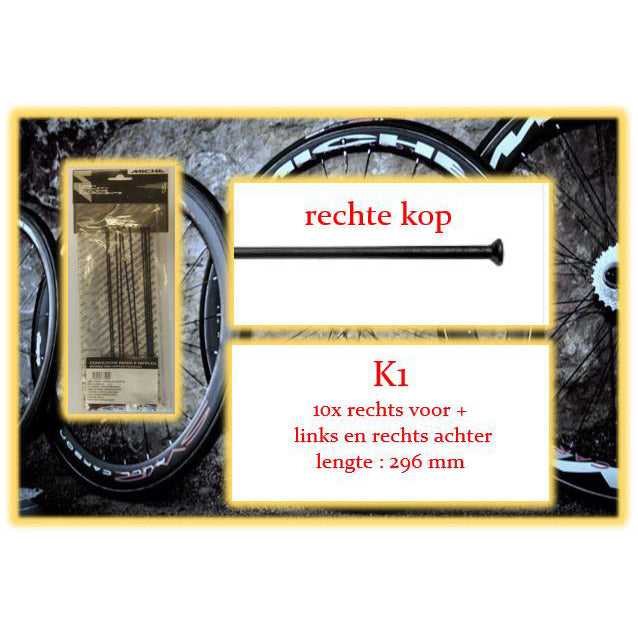 Een spaak met een lengte van 296 mm en een rechte kop. De spaak is zwart van kleur.
