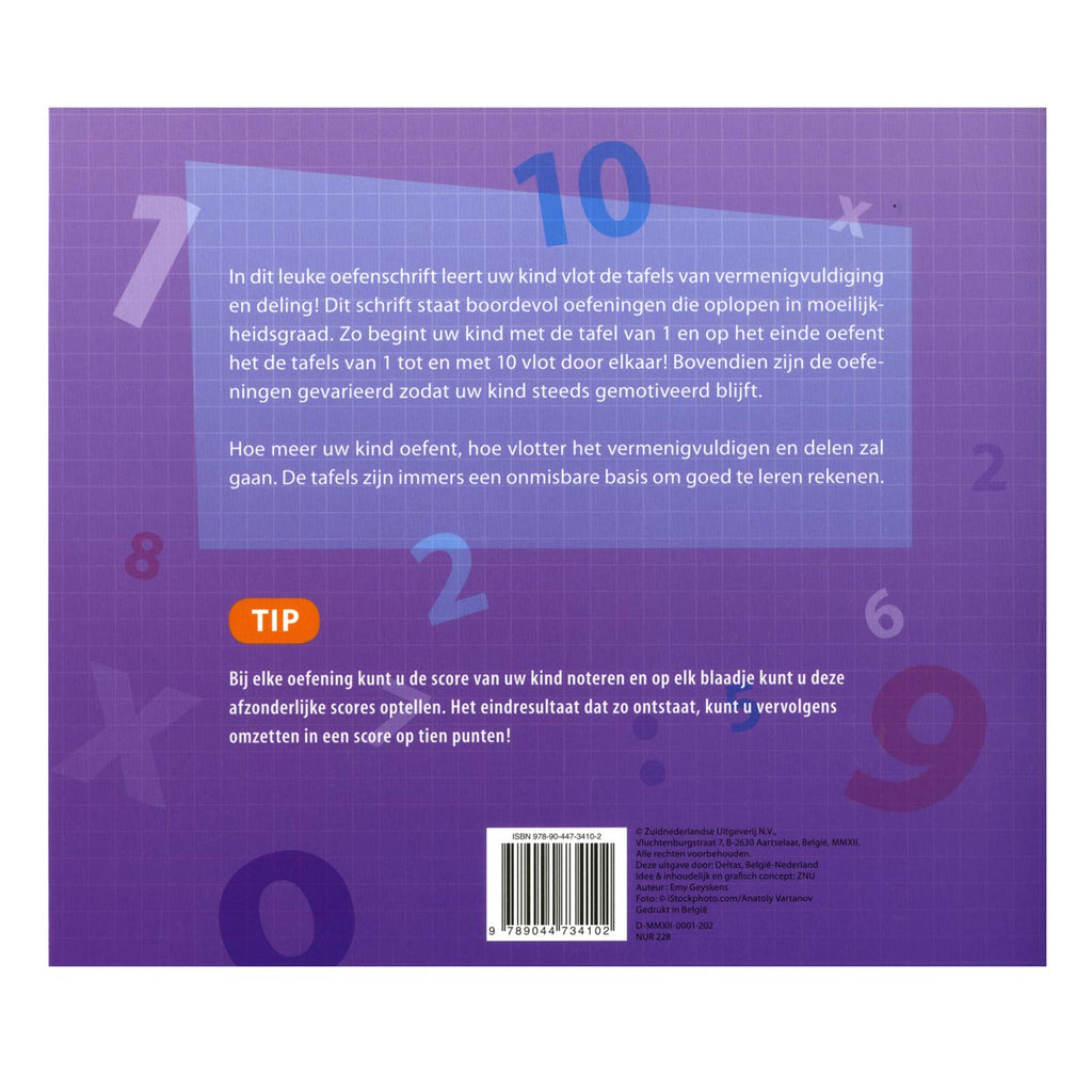 Dit leuke oefenschrift is perfect om uw soort te helpen met het leren van de tafels van vermenigvuldigen en delen! Het schrift bevat een scala aan oefeningen die geleidelijk in moeilijkheidsgraad stijgen. Uw soort begint met de tafels van 1 en grotendeels met het vlot oefenen van de tafels van 1 tot en met 10 door elkaar! De oefeningen zijn gevarieerd om ervoor te zorgen dat uw kind gemotiveerd blijft. Hoe meer uw soort oefent, hoe beter het zal worden in vermenigvuldigen en delen. Deze tafels vormen namelijk een essentiële basis voor het leren rekenen.