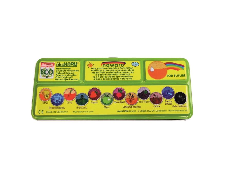 Artikelnummer: 4019427797000 Bekijk alles van ökoNORM > Bekijk meer: Knutselspullen > Ökonorm - Verfdoos aquarelverf - 12 kleuren Nawaro Natural Watercolours 12 Kleuren 12 aquarellen gemaakt van plantaardige grondstoffen, met hooggeconcentreerde plantenextracten, kleurstoffen en levensmiddelenadditieven. Nieuwe formule en verpakking van de heel beroemde waterverf. Deze nawaro aquarel verf is geschikt voor gebruik op school of in je vrije tijd. De onopvallende natuurlijke kleuren veranderen in prachtige effectieve kleuren wanneer ze gemengd met water worden. Kan worden gebruikt als conventionele aquarelverf, mengbaar en kan worden gebruikt met dekkend wit. Aquarelverf voor kinderen, kunstenaars, creatieve mensen in voedselkwaliteit voor school en vrije tijd. Een merkproduct, vervaardigd volgens DIN EN 71 De verf kan vlekken achterlaten op je kleren, dus voor de zekerheid onmiddelijk wassen. Wanneer de verf op huid komt is deze gemakkelijk met zeep te verwijderen. Is gemaakt van 100% natuurlijk materiaal. Houd het product uit de zon. Niet eetbaar! De onopvallende natuurlijke kleuren ontwikkelen hun volle kleur en vloeiend wanneer ze gemengd worden met water. Bescherm kleuren tegen zonlicht. Was er verfvlekken op de huid van met zeep, was ze uit textiel. Natuurlijke kleuren kunnen resten achterlaten op textiel. Verven zijn bedoeld om te schilderen en niet voor consumptie. Geen voedsel! Productspecificaties Verfdoos aquarelverf - 12 kleuren - 12 stuks Artikelomschrijving Verfdoos aquarelverf - 12 kleuren Artikelnummer 4019427797000 Uitvoering 12 stuks Land van herkomst Duitsland Verfdoos: volledig van metaal, zilverkleurig met sticker. Binnenkant van het deksel wit geverfd. Bekers met een diameter van 30 mm van polypropyleen, vervangbaar. Zonder borstel! Verpakking gemaakt van gerecycled karton. Basisingrediënt: maltodextrine, plantaardig zetmeel, titaniumdioxide, zonnebloemolie, tocoferol/natuurlijke vitamine E. Conservering: kaliumsorbaat. Kleurstoffen: Mengsel van ingrediënten met kleureigenschappen: appel (Malus), blauwgroene algen (Spirulina), carotenen (wortel/wortel) (Daucus carota), aardbei (Fragaria), saffloer (Carthamus), groenteplanten (hydrocolloïd), radijs (Raphanus), Rode biet (Beta vulgaris), rode kool (Brassica oleracea), zwarte bes (Ribes nigrum), citroen (Citrus), gebrande suiker - karamel (sucrose) en anthocyanen (flavonoïden), curcumine (Curcuma longa), bèta-carotenen (Carota), biochar (Carbo medicinalis). Deze natuurlijke kleuren zijn geschikt voor veganisten. Films