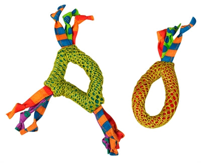 De speeltjes zijn speciaal ontworpen om het gebit van jouw kat in topconditie te houden. Het draad wat om het speeltje ingewikkeld zit lastig tandplak wanneer jouw kat speelt en erop kauwt. Om het speelgoedje niet aantrekkelijker te maken, is het gevuld met kattenkruid. Het netje zal niet gaan rafelen tijdens het kauwen. De twee speeltjes passen mooi bij elkaar door het kleurrijke ontwerp!