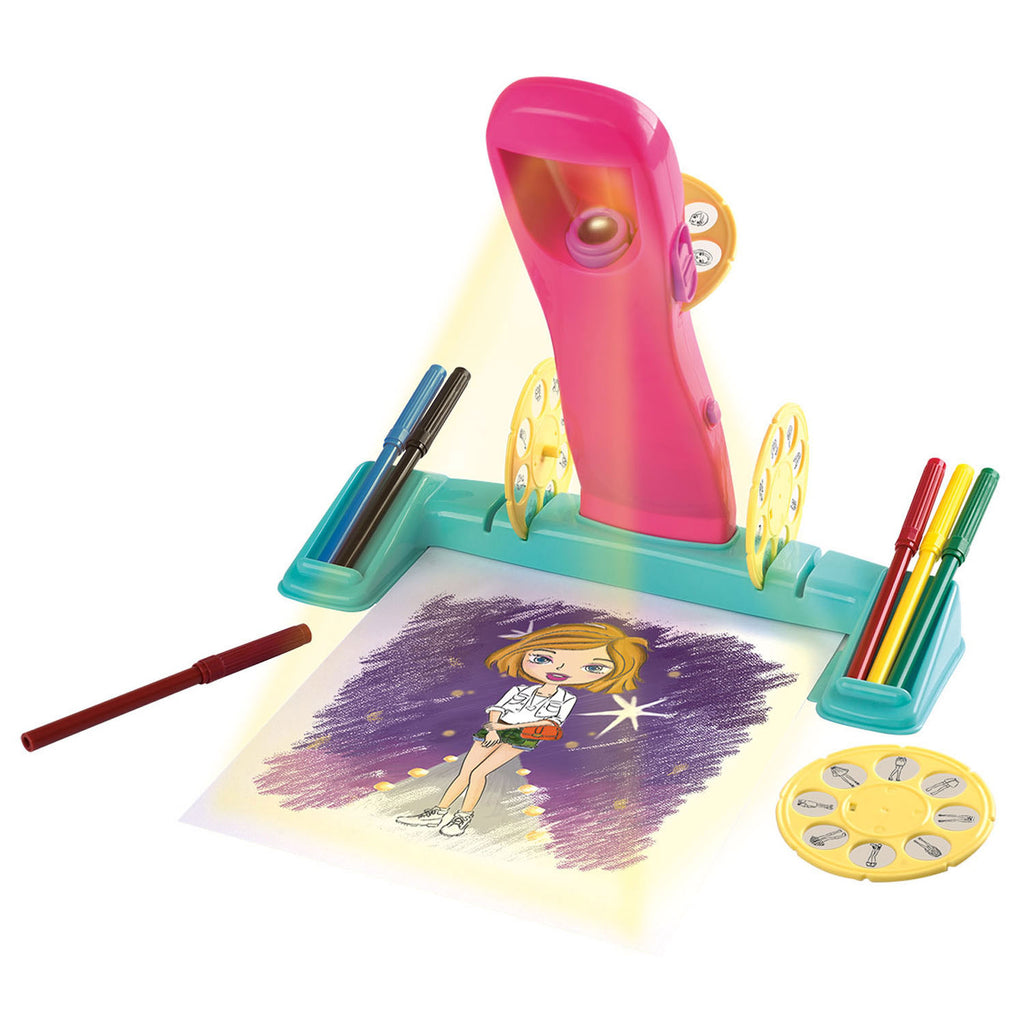 Deze Play Fashion Projector is speciaal voor de kleine modeontwerpsters. Alles in deze kit is bedoeld om je creativiteit op de proef te stellen! Met behulp van de projector kun je de kledingstukken eenvoudig op het papier projecteren, zodat de kledingstukken één voor één op het papier getekend kunnen worden. Er kan eindeloos gevarieerd worden! In de set zit een projector, vier projectieschijven met 32 verschillende afbeeldingen en zes viltstiften. De stiften en de schijven kunnen eenvoudig in de projector worden opgeborgen.