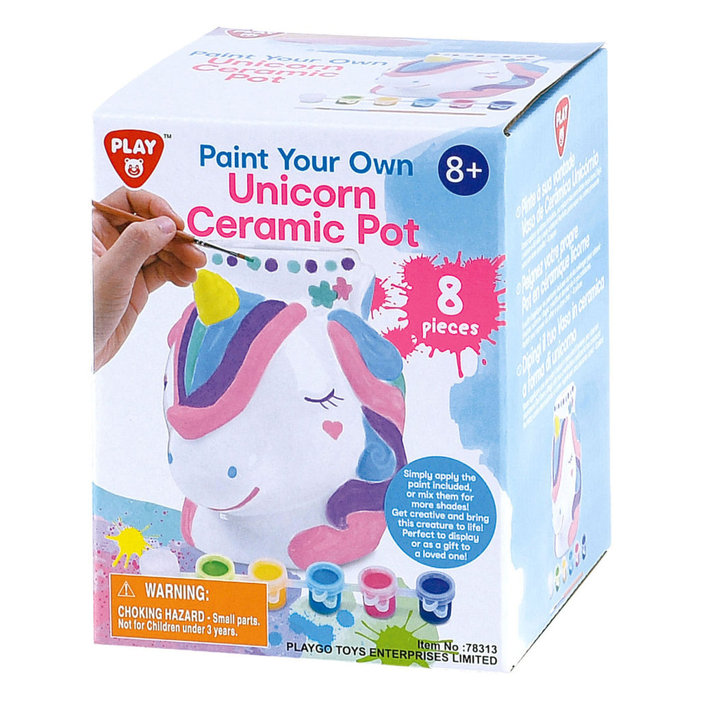 Verf je eigen keramische eenhoorn met deze schilderset van Play! Met 1 potje keramiek, 6 verfpotjes en 1 penseel. Vanaf 8 jaar.