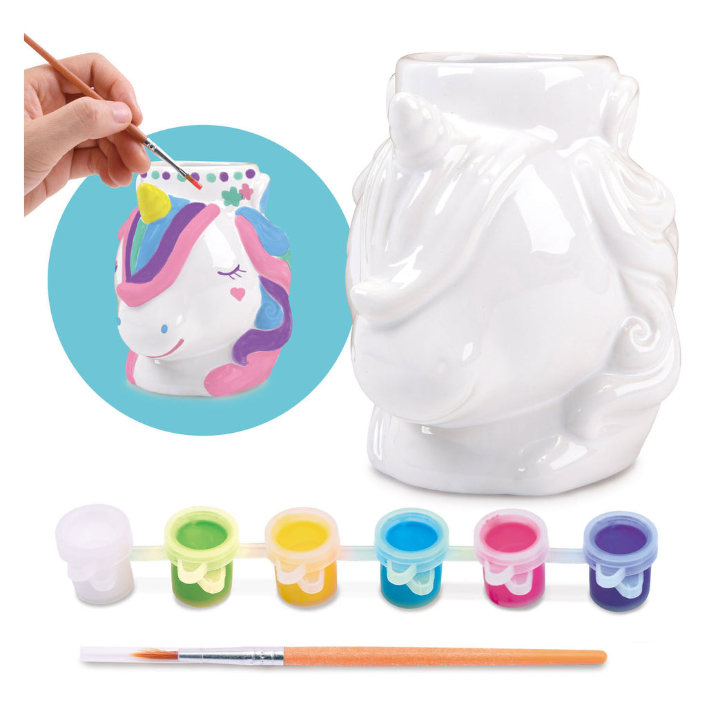 Speel Verf je eigen Keramische Eenhoorn Potje, 8dlg.