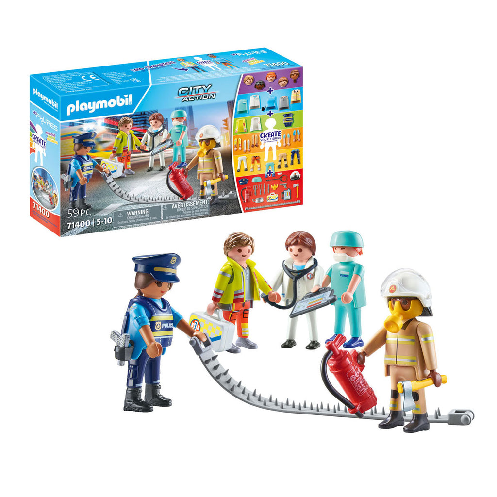 Wees creatief. Wees uniek. Wees cartoon. Ze zijn de heldinnen en helden van het dagelijks leven. Bouw je eigen figuur uit de werelden van de brandweer, medische hulpverlening en politie helemaal naar jouw ideeën met de PLAYMOBIL My Figures.