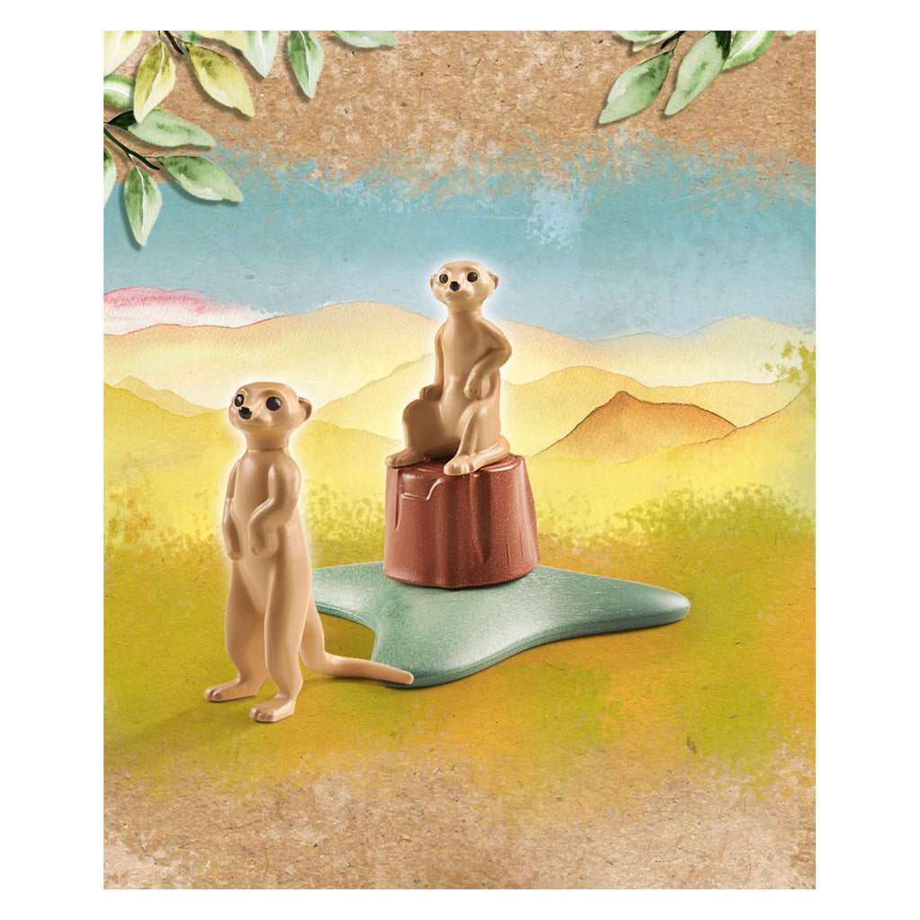 PLAYMOBIL stokstaartje inclusief accessoires, dierenkenniskaart om te verzamelen en spannende audiocontent. Met de Wiltopia-serie van PLAYMOBIL kunnen kinderen dieren en de natuur in hun eigen wereld ontdekken en zich onderdompelen in fantasierijke rollenspellen.