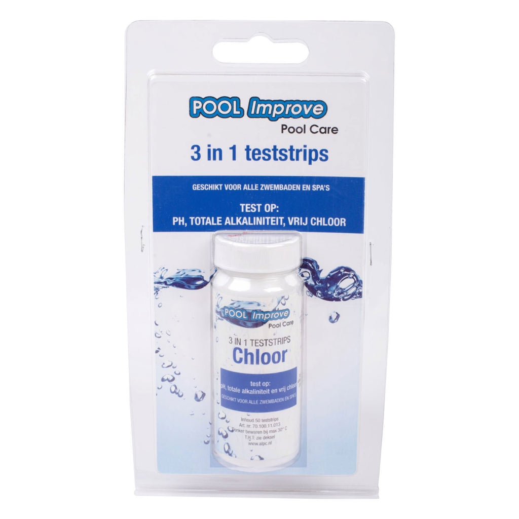 Teststrips voor zwembadwater zijn een eenvoudige en handige manier om de kwaliteit van het water te controleren. Deze 3-in-1 strips meten het vrije chloor, de pH-waarde en de alkaliën van het water.