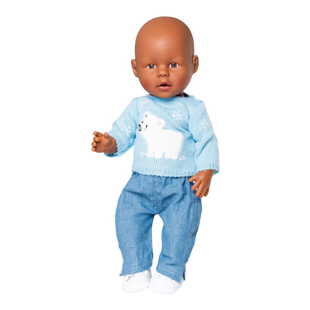 Dit inspirerende poppenkostuum van Heless zal de harten van alle poppenouders verwarmen. De zachte gebreide trui is versierd met een uitgebreide ijsbeer afbeelding en borduursel. De comfortabele jeans met blauwe naden en een goede pasvorm maken de outfit helemaal af. Een geweldige poppenkledingset voor het koude seizoen. Deze set is geschikt voor de meeste poppen op de markt van 28-35 cm. Het artikel wordt geleverd op een houten hanger. Materiaal: Trui: 100% polyacryl, jeans: 100% katoen Maat: 28-35 centimeter. Leeftijd: Geschikt voor kinderen vanaf 3 jaar. Verpakking: Dit product wordt geleverd op een praktische houten hanger.