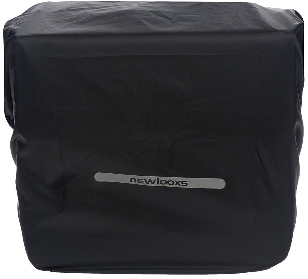 Deze regenhoes van New Looxs is perfect om uw dubbele fietstas droog te houden tijdens natte omstandigheden. Gemaakt van waterdicht polyester en voorzien van een elastische band, schuif je de hoes gemakkelijk over de tas. Met reflecterende details aan drie zijden zorgt deze regenhoes ook voor extra veiligheid tijdens het fietsen. Het regenhoes is geschikt voor bijna alle dubbele fietstassen van New Looxs. Bescherm je spullen tegen regenbuien en ga veilig op pad met deze regenhoes. Productspecificaties - Kleur: zwart - Materiaal: polyester - Afmeting: 40 x 97 cm (B x L) - Reflectie: reflecterende details aan drie zijden