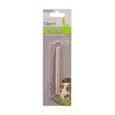 De Rosewood Hondenfluit Ultrasoon Deluxe is een chique hondenfluit om jouw hond te trainen; met een toon die niet hoorbaar is voor mensen. Ideaal om te gebruiken tijdens trainingen of wandelingen in open gebieden omdat de toon erg ver draagt. Goed hoorbaar voor honden; niet voor mensen! De fluit komt met twee ringen en een kettinkje om hem aan op te hangen.
