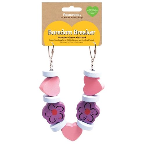 De Woodies Slinger Bloem 43 cm is knaagspeelgoed voor knaagdieren zoals konijnen en cavia's in de vorm van een kleurrijke slinger. Knaagdieren kunnen hun leefomgeving ontdekken en hun tanden te slijten. Tanden blijven namelijk hun hele leven doorgroeien. Tijdens het knagen schuiven de tanden over elkaar, waardoor de tanden niet te lang worden. Ondanks dat jouw knaagdier het speelgoed uiteindelijk kapot knaagt, betekent dat natuurlijk niet dat het speelgoed niet leuk en campagne kan zijn. De speeltjes in de Woodies serie zijn kleurrijke en gemaakt voor alle soorten knaagdieren.
