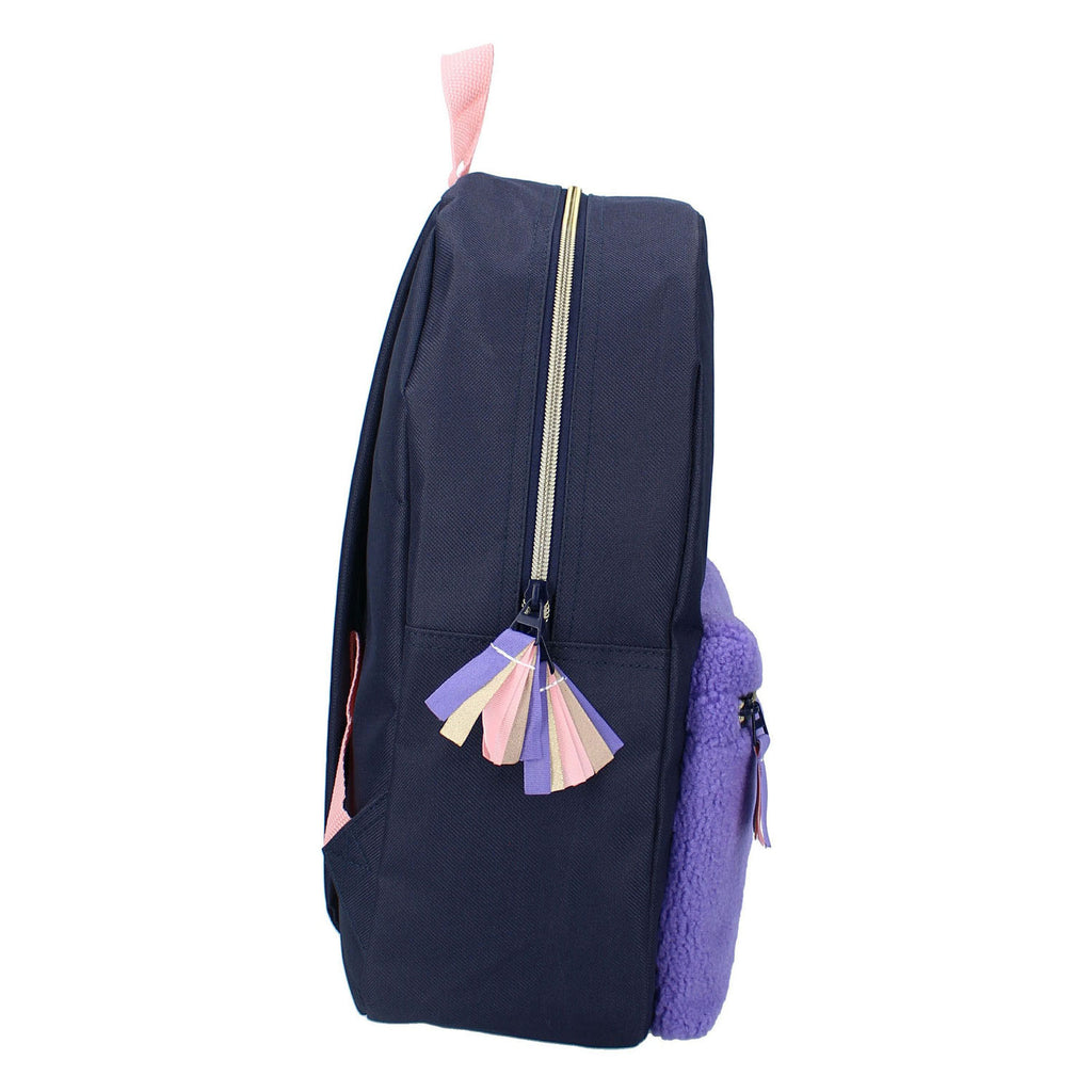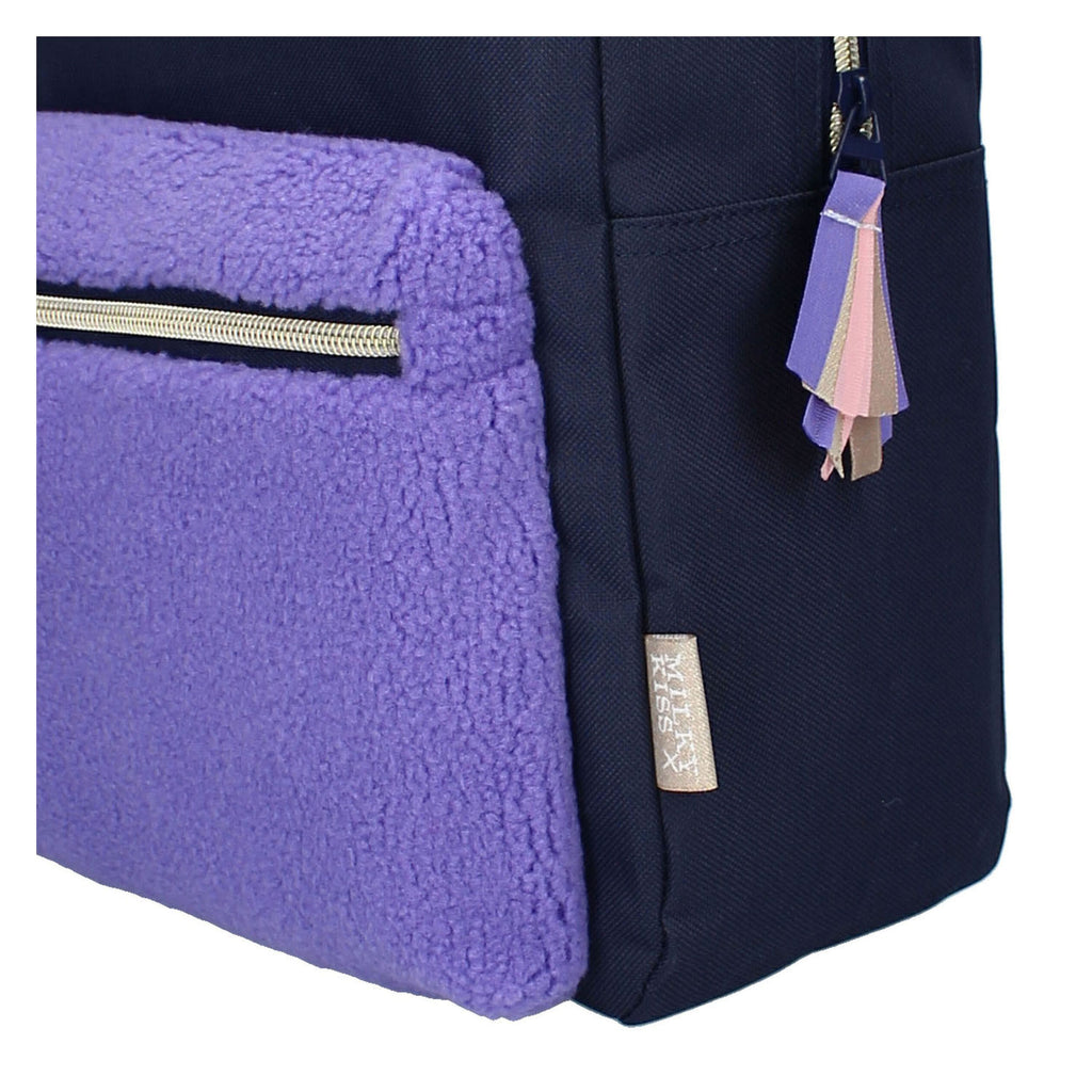 Hoe leuk is deze stoere Milky Kiss tas? De rugzak komt uit de collectie Sweet Darling. De rugzak heeft een ruim afsluitbaar hoofdvak waarin je al je spullen kwijt kunnen. De voorkant van de tas is voorzien van een handig voorvakje gemaakt van teddystof met verbrand. Neem de tas mee naar school of een dagje weg. Verder kan de rugzak gemakkelijk worden gemist met de ophanglus. De comfortabele schouderbanden zijn in lengte verstelbaar, dus deze rugzak kan een lange tijd worden gebruikt.