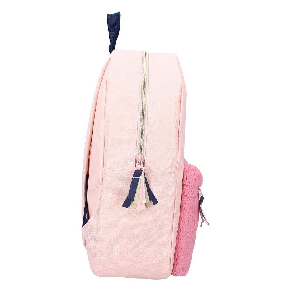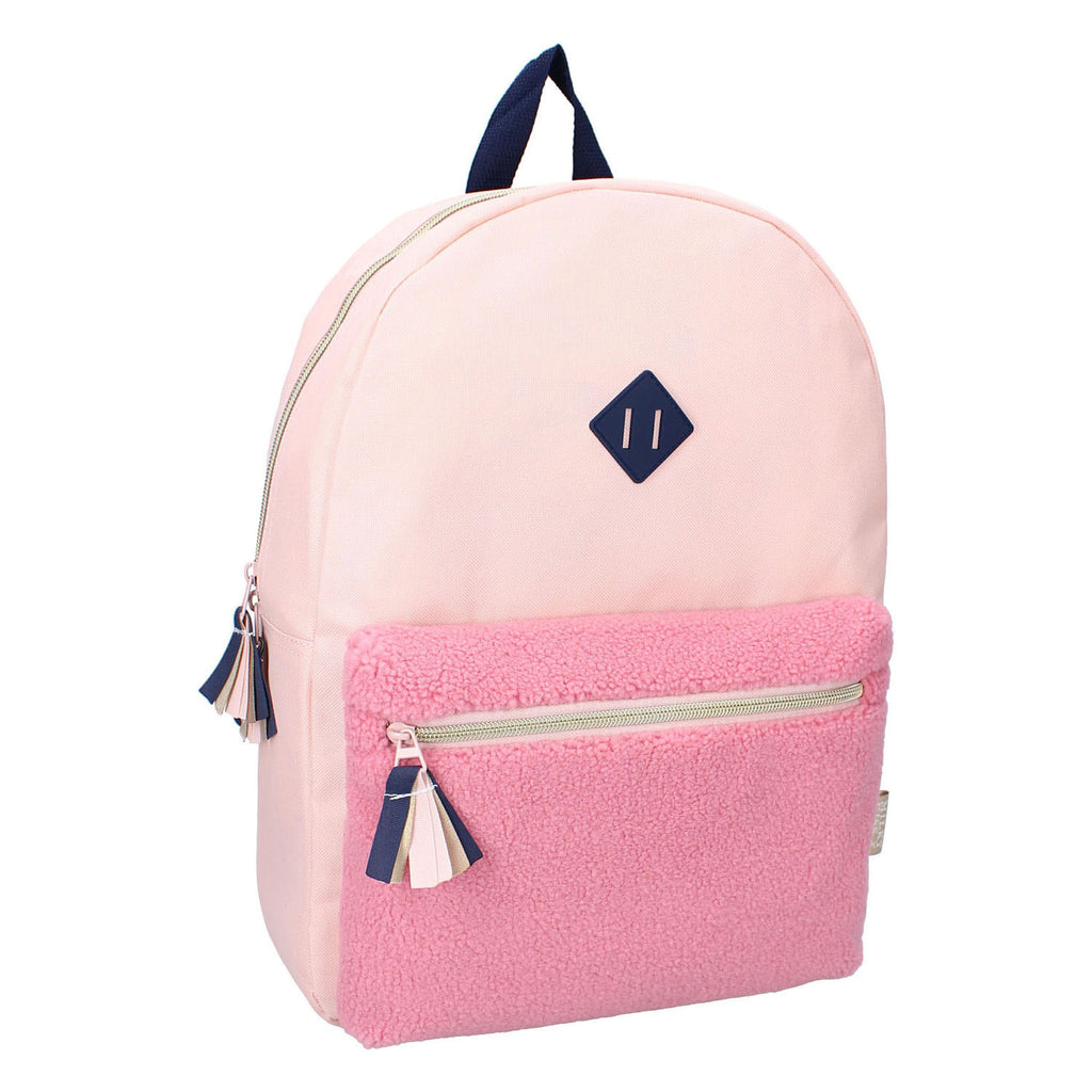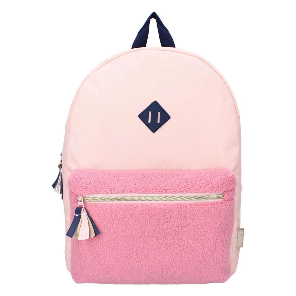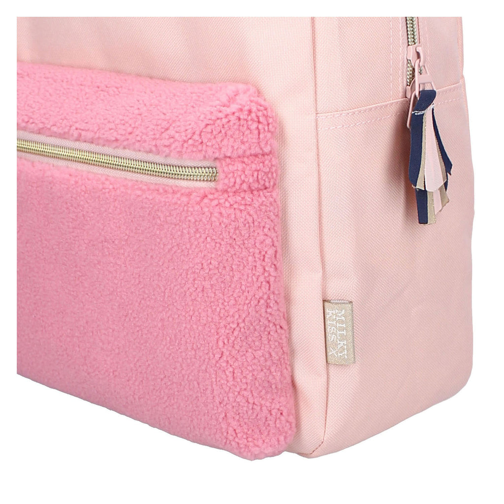 Hoe leuk is deze stoere Milky Kiss tas? De rugzak komt uit de collectie Sweet Darling. De rugzak heeft een ruim afsluitbaar hoofdvak waarin je al je spullen kwijt kunnen. De voorkant van de tas is voorzien van een handig voorvakje gemaakt van teddystof met verbrand. Neem de tas mee naar school of een dagje weg. Verder kan de rugzak gemakkelijk worden gemist met de ophanglus. De comfortabele schouderbanden zijn in lengte verstelbaar, dus deze rugzak kan een lange tijd worden gebruikt.
