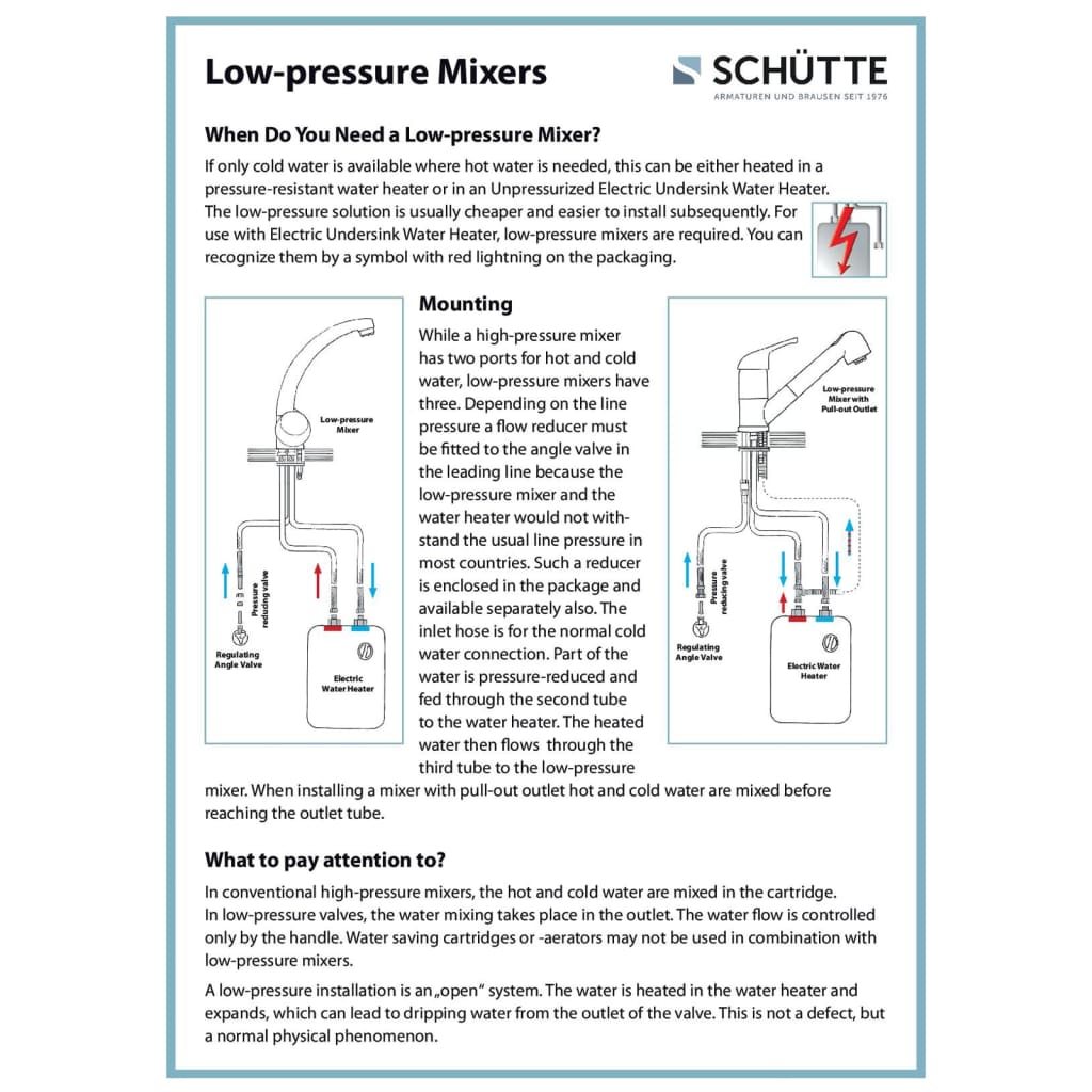 • Lage druk: alleen geschikt voor drukloze onderbouwapparaten/kleine accumulatoren
