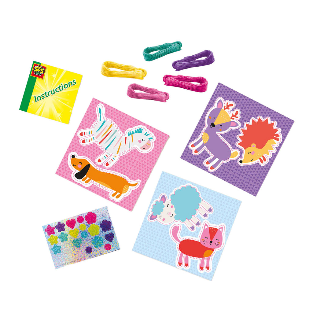 Geef deze dieren een warme en kleurrijke vacht met de 5 kleuren garen in deze set. Het schaap kan wat extra wol gebruiken en de egel ziet er vrolijk uit in een nieuw kleurtje. Nadat de dieren warm zijn, kun je ze mooi formaat met glitters stickers.