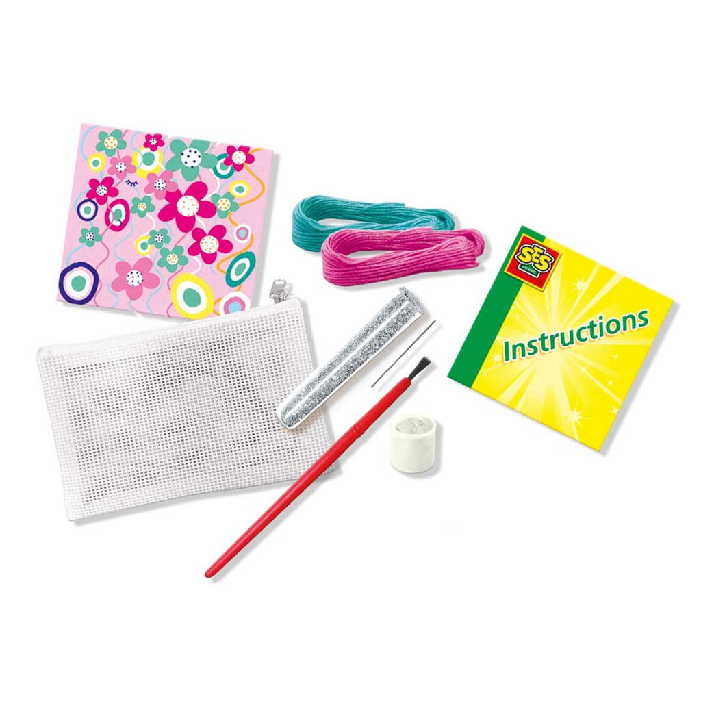 "Steel de show op alle feesten met je eigen Unicorn tasje, die je helemaal zelf in elkaar kan knutselen. Of neem het tasje mee naar school voor je pennen, gum of je lipgloss. Met de veilige borduurnaald zet jij in een handomdraai de unicorn op je tasje. Versier je unicorn met glitters en maak met het garen een handig handvat en hip klosje. In de instructies wordt uitgelegd hoe je een heuse tassel in elkaar zet."