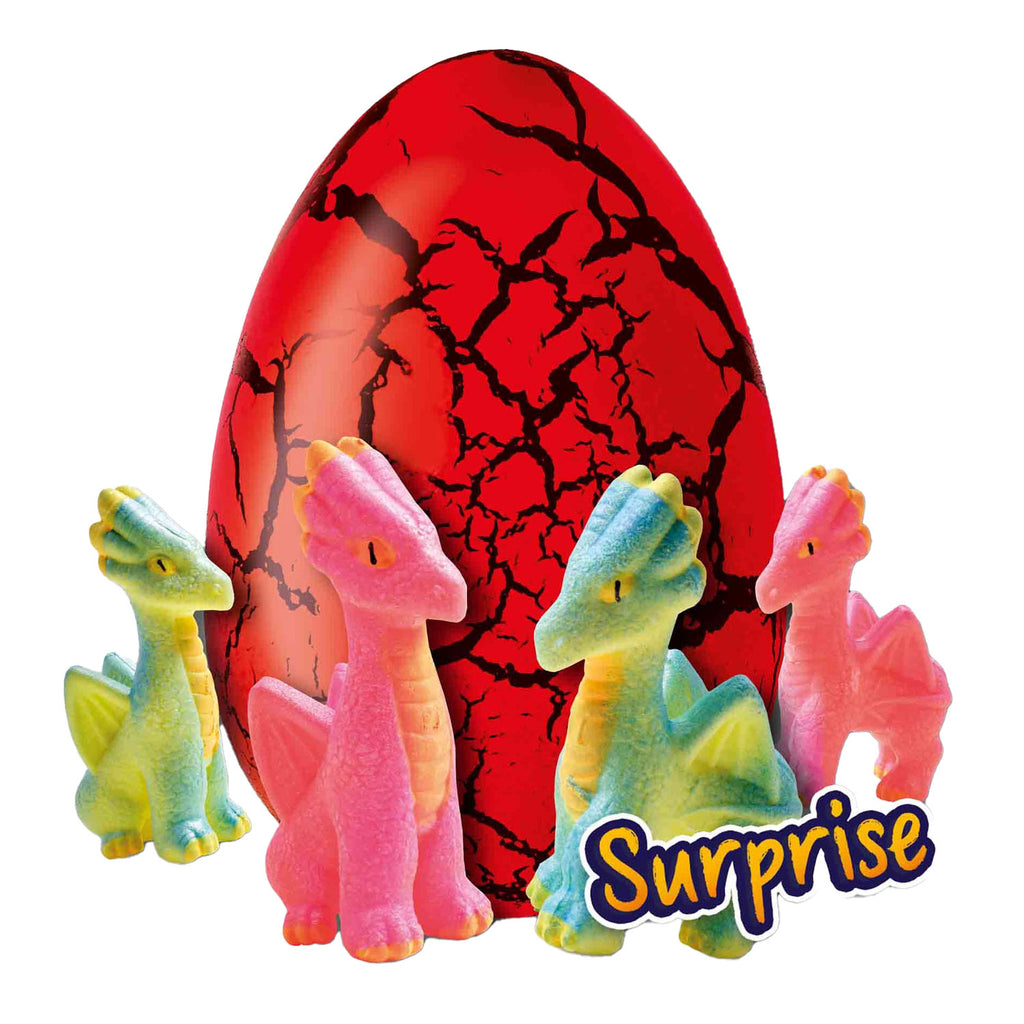 In deze drakenei zit een heel bijzondere draak verstopt. Kinderen kunnen dit bijzondere ei zelf thuis uitbroeden door het ei in water te leggen. De draak zal groeien en groeien totdat de schaal openbarst en hij tevoorschijn komt! En daarna wordt hij zelfs nog groter! Een spannende activiteit met een verrassend groot resultaat. Er zijn vier verschillende draken. Welke draak komt er bij jullie uit het ei? Kenmerken • Door het drakenei in water te leggen, zal de draak gaan groeien en uiteindelijk uit het ei barsten • Nadat de draak uit het ei is gekomen wordt hij nog groter! • Het is een verrassing hoe de draak eruit gaat zien Geschikt voor kinderen van 5 jaar en ouder.