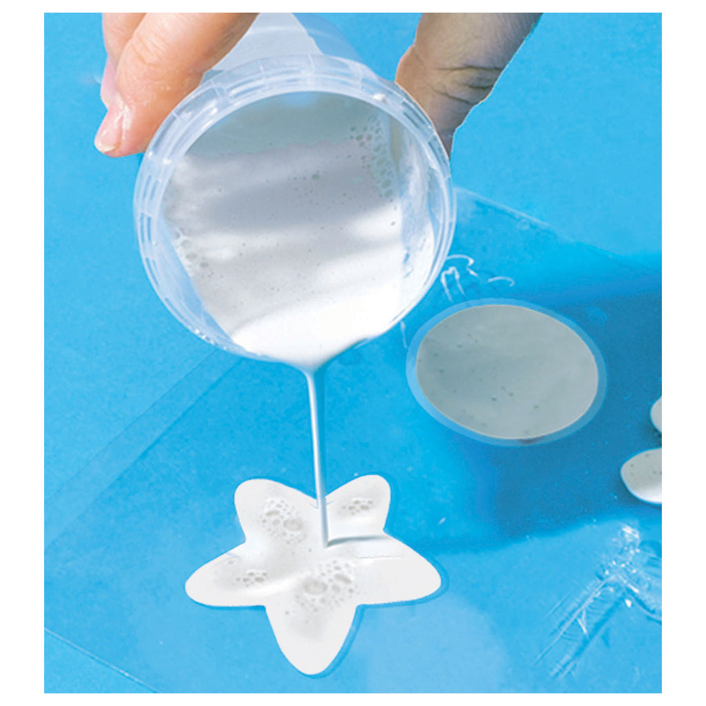 Met de SES Gieten en Schilderset kun je 11 oceaanfiguren maken. Giet vloeibaar gips in de grote gietvorm en laat het opdrogen. Schrijf het blij voor een mooi resultaat. Gebruik de bijgeleverde kwast, 6 potjes verf en glitter om de zeemeermin, dolfijn, vis, schelp en andere oceaanfiguren kleur te geven. Met deze set kun je jouw eigen 6 oceaanfiguren maken.