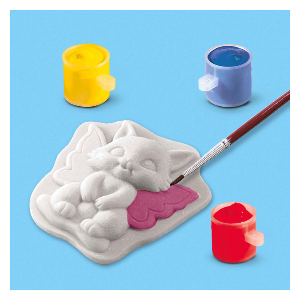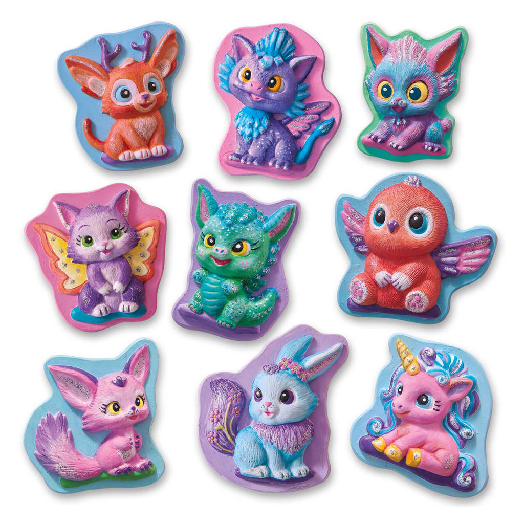 Ontdek de mega experimentele fantasiefiguren in de gips gietset Gieten en Schilderen Schattige Fantasiefiguren. Met het gips, de spatel en de gietmal maak je eenvoudig 11 mooie gedetailleerde beeldjes van fantasievolle draken, unicorn, konijn, poesje en meer.Met de 6 bijgeleverde kleuren, dekkende plakkaatverf en de tube glitterlijm maak je de meest fantastische beeldjes naar eigen creativiteit.Perfect voor kinderen én volwassenen die houden van knutselen en schilderen!