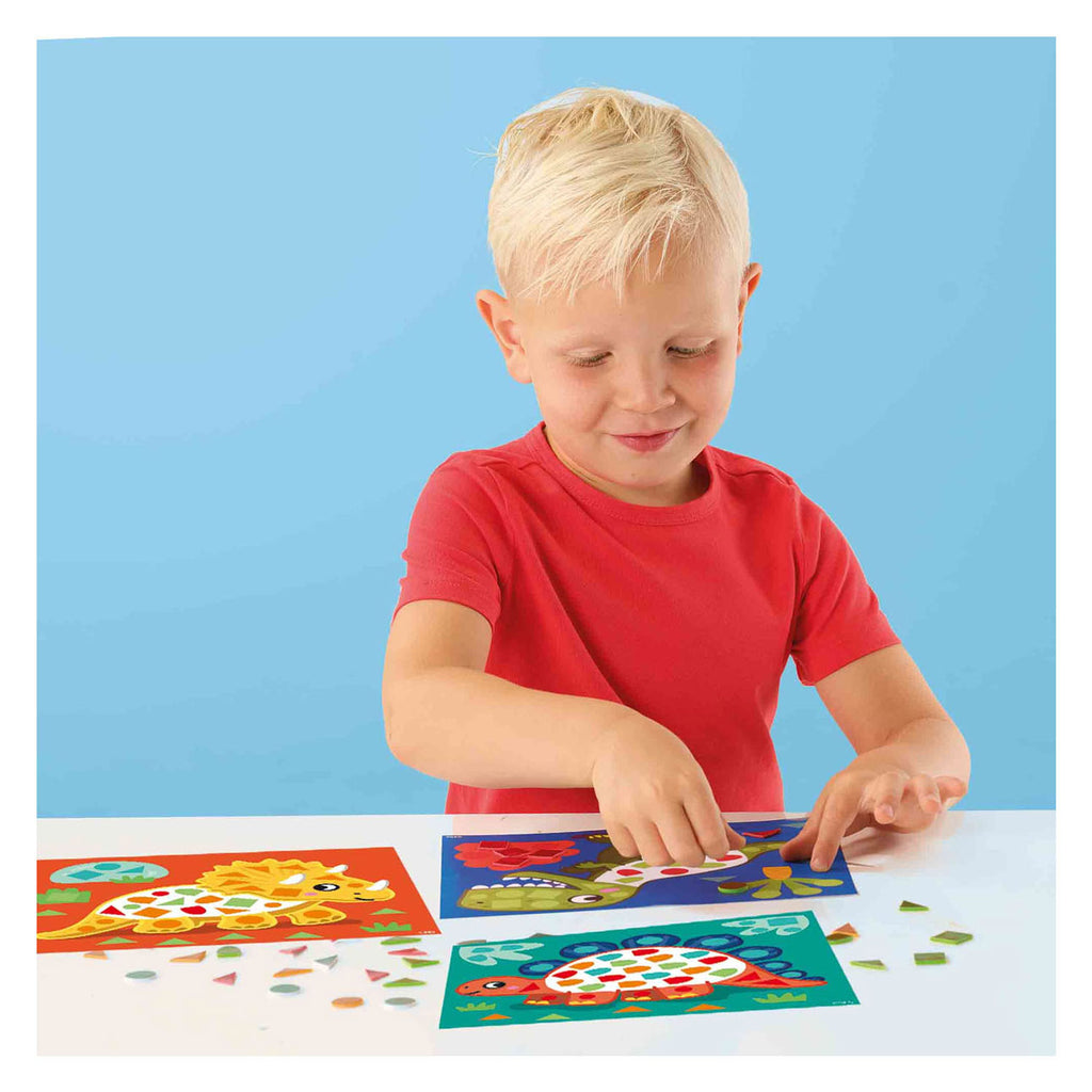 Leer de complete wereld van dinosaurussen kennen met de Ik leer dinosaurussen set! Door middel van plakken, kleuren en puzzelen leer jij alles over de dino's. Je leert hoe dino's eruit halen, zagen, wat ze precies aten en hoe ze herkennen zijn. Zo leer binnenkort een Triceratops of Apatosaurus meteen te herkennen! Kenmerken • Educatief • Spelenderwijs alles over 12 dino's leren • Spelenderwijs leren • Meerdere knutsel en puzzelactiviteiten Inhoud • 36 dinokaarten • Stickerveld dino's en kenmerken • 8 Kleurpotloden • Kleurplaat dinowereld • Instructies Geschikt vanaf 3 jaar.