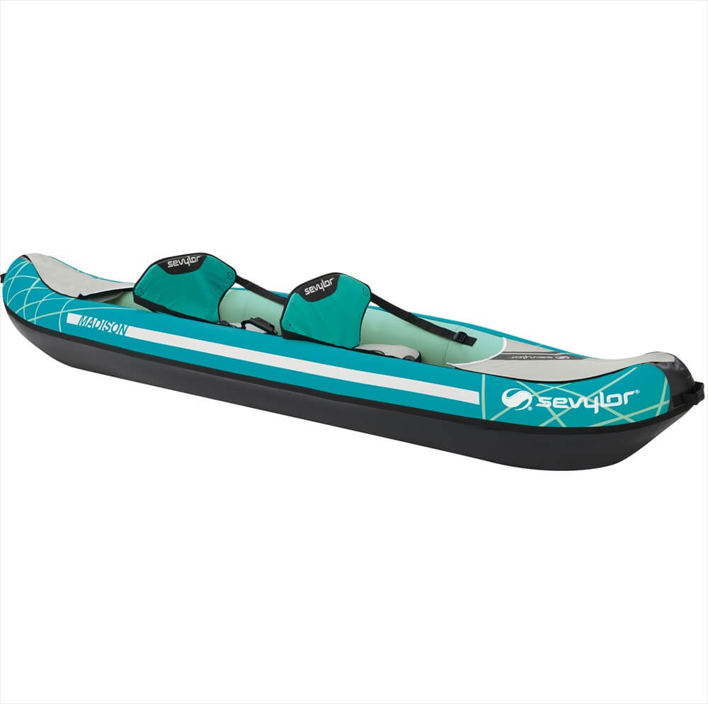 "De Sevylor Madison kajak is een robuuste opblaasbare kano van het hoogste segment. Deze kano is speciaal ontworpen om lekkages te voorkomen en is voorzien van vervangbare luchtkamers. Met 2 stevige verwijderbare stoelen biedt de kano optimaal comfort tijdens het peddelen, met een maximale draagkracht van 200 kg. Daarnaast is er een vin voor flexibel en zijn er 2 stevige bevestigingspunten aan de kano." Productspecificaties: - Hoogwaardige opblaasbare kano - samengesteld om lekkages te voorkomen - Vervangbare luchtkamers - 2 stevige verwijderbare stoelen - Maximaal draagvermogen: 200 kg - Inclusief vin voor stabiliteit - 2 stevige bevestigingspunten