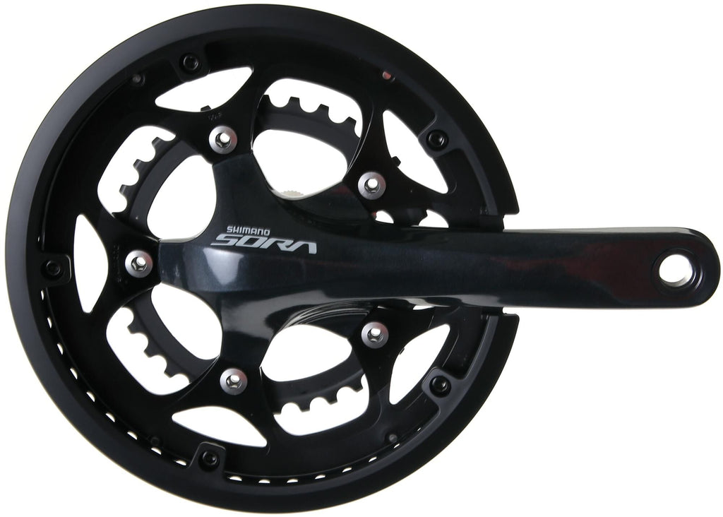 Presentatieverpakking, 34/50 tands, 2-speed, 5-arm, Hollowtech II, zonder bracketset, mod. 17, zwart 9-speed compatibel, met kettingrand SHIMANO crankstel De Sora crank van SHIMANO is verkrijgbaar in 170,0 mm. Omdat de crank van aluminium is gemaakt, gaat hij bijzonder lang mee en bespaart hij gewicht. Er zijn twee Kettingbladen, met 34 tanden op de kleine en 50 op de grote. Het past op de hollowtech II Traplagers en de aandrijving met 9 versnellingen van je fiets. Aantal kettingbladen 2 Cranklengte 170.00 mm Hoofdkleur zwart Kettingblad groot 50 inch Kettingblad klein 34 inch Systeemcompatibiliteit 9-speed Trapas Hollowtech II Type/soort Artikel Variatie crankstel