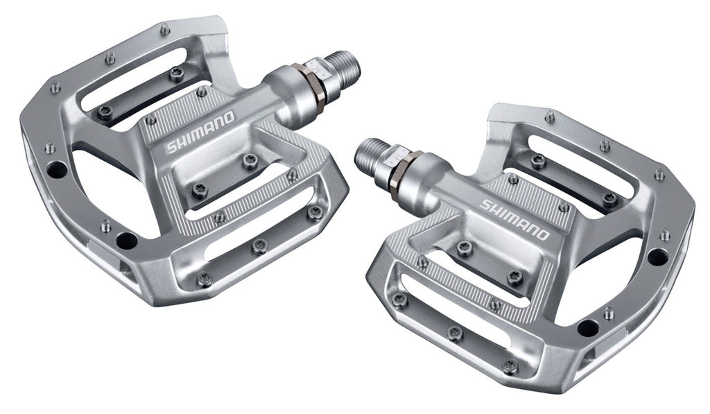 Deze pedalen zijn geschikt voor MTB, BMX, Enduro, Trail en All Mountain rijden. Ze hebben het model PD-GR500 en zijn een platformpedaal. Het materiaal dat is gemaakt van Chromoly staal en het mechanisme is afgedicht. De kooi is gemaakt van gelakt aluminium en de pedalen wegen 535 gram per paar. Ze hebben ook een reflector, model SM-PD64.