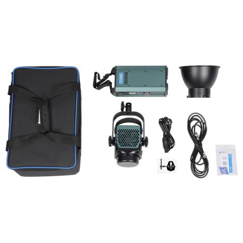 - Heel veel licht: de 150 watt LED-lamp zorgt voor maar liefst 6.100 LUX op 1 meter afstand. Het licht is traploos instelbaar van 1 tot 100%. Ook de kleurtemperatuur stel je traploos in, van 2800K tot 7000K. De lichtkwaliteit ontmoet zich met de premium-merken op de markt, met een CRI van 96 en een TLCI van 98. Het licht is dus precies goed, voor elke professionele productie. Ook is de LED-lamp een stuk lichter dan functionele merken, ondanks zijn robuuste metalen behuizing.