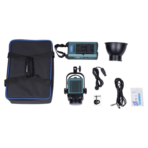 - Heel veel licht: de 300 watt LED-lamp zorgt voor maar liefst 11.500 LUX op 1 meter afstand. Het licht is traploos instelbaar van 1 tot 100%. Ook de kleurtemperatuur stel je traploos in, van 2800K tot 7000K. De lichtkwaliteit ontmoet zich met de premium-merken op de markt, met een CRI van 96 en een TLCI van 98. Het licht is dus precies goed, voor elke professionele productie. Ook is de LED-lamp een stuk lichter dan functionele merken, ondanks zijn robuuste metalen behuizing.
