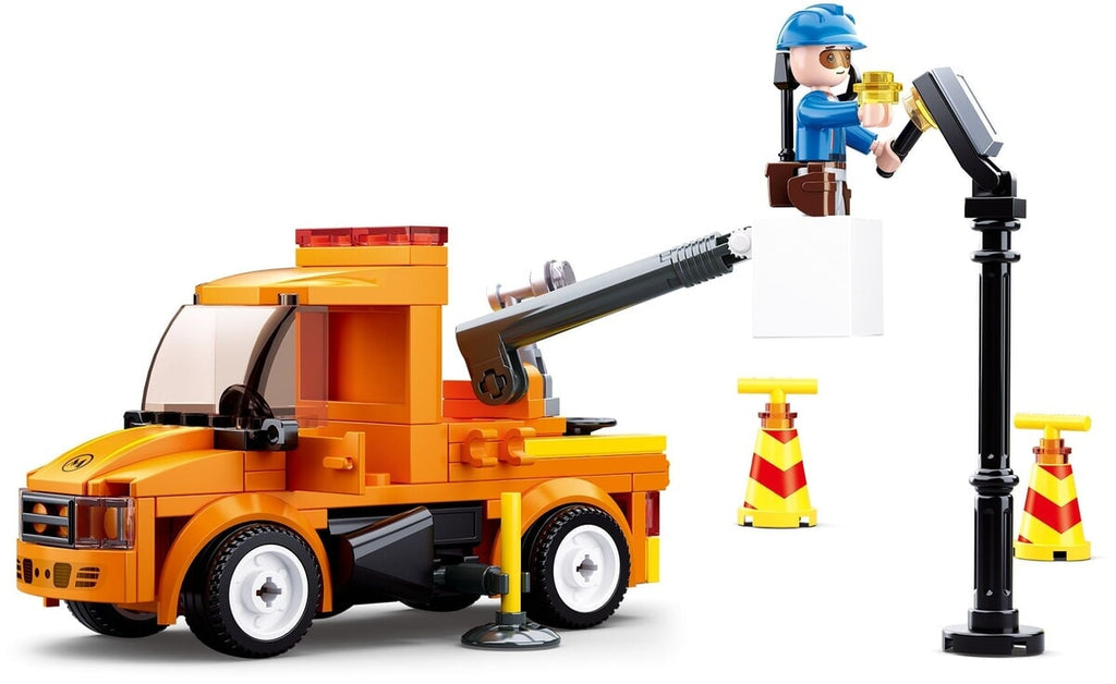 Houd de stad op orde met deze lampenwagen! Bouw zelf de lampenwagen en laat de chauffeur rondrijden om alle kapotte lampen in de straten te vervangen. Verzamel ook de andere drie voertuigen om jouw stad spik en span te houden! Inhoud: 122 bouwblokjes om de lampenwagen te bouwen en 1 chauffeur.