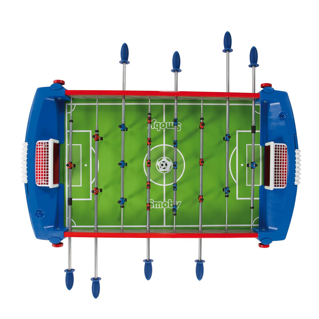 Stevige voetbaltafel voor kinderen van het merk Smoby. De tafel is zeer stabiel dankzij de sterke buizen en anti-slip pads. De tafel is voorzien van ergonomisch gevormde handgrepen, een 'grasveld' als ondergrond en scoretellers aan beide kanten. Inclusief twee tafelvoetbalballetjes.