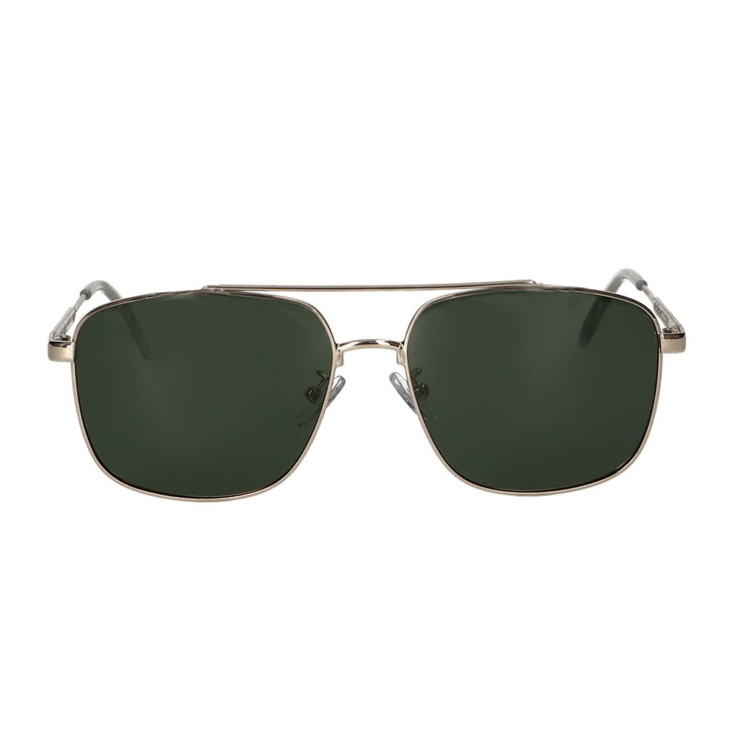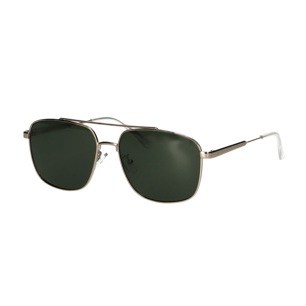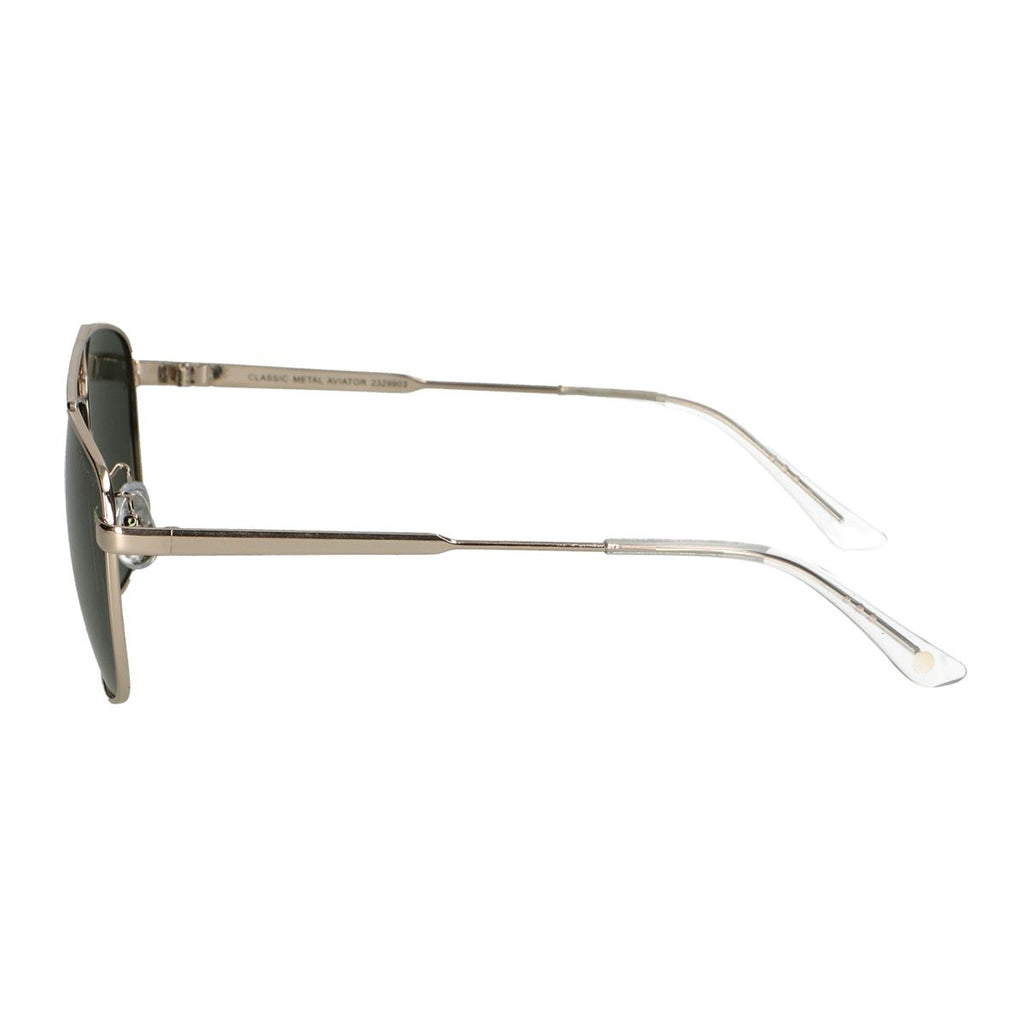 is een bril met een UV400/ CE-CAT 3 filter. Deze zonnebril is ISO 12312-1 en nikkelvrij. Het slanke metalen frame in messingkleur geeft de bril een moderne uitstraling, terwijl de groene glazen zorgen voor comfortabel zicht bij fel zonlicht. Ideaal voor mannen die oogbescherming willen combineren met een modieuze look.