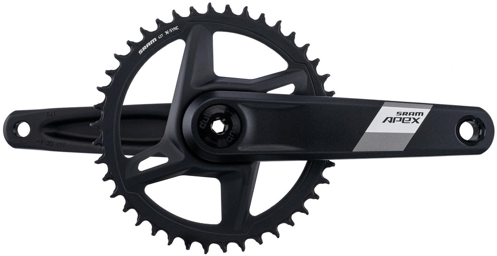 1-speed, DUB, Wide as, kettinglijn 47,5 mm, zonder bracketset, zwart 12-speed compatibel, crank van aluminium, kettingblad voor directe montage van aluminium Aantal kettingbladen 1 Cranklengte 170.00 mm Hoofdkleur zwart Kettingblad groot 42 inch Systeemcompatibiliteit 12-speed Type/soort Artikel Variatie crankstel