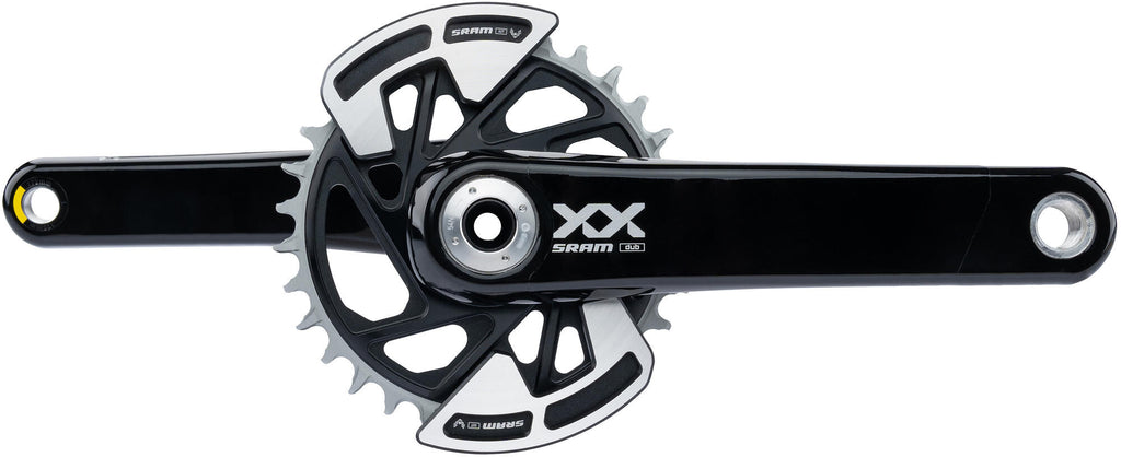 32 tands, 1-speed, DUB, zonder bracketset, zwart 12-speed compatibel, carbon crankarm met kern van schuimrubber, gefreesd kettingblad van aluminium voor directe montage, met twee bashguards, Q-factor 174 mm, Wide as (kettinglijn 55 mm) Aantal kettingbladen 1 Cranklengte 175.00 mm Hoofdkleur zwart Kettingblad groot 32 inch Systeemcompatibiliteit 12-speed Trapas DUB Type/soort Artikel Variatie crankstel