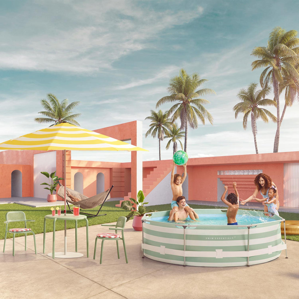 Het framezwembad is rond en heeft de afmetingen van Ø305 x 76 cm. Het frame zwembad bevat een uniek vintage design door de stralende groen witte print en staat dus perfect in ieders tuin. Dit frame zwembad wordt zonder filterpomp geleverd. Inhoud: 3850 liter.