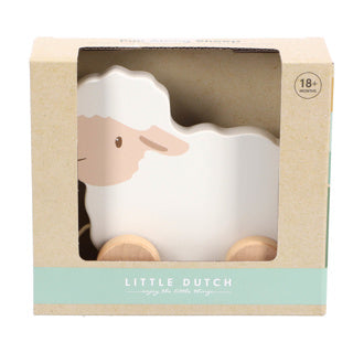 Kleine Boerderij Trekdier Schaap. Ga samen op avontuur met dit trekdier van Little Dutch. Trek dit experimenteel schaapje voort aan het touwtje en hij hobbelt vrolijk met je mee. Leuk om te combineren met de trekdier kippen. Geschikt voor kinderen vanaf 18 maanden.