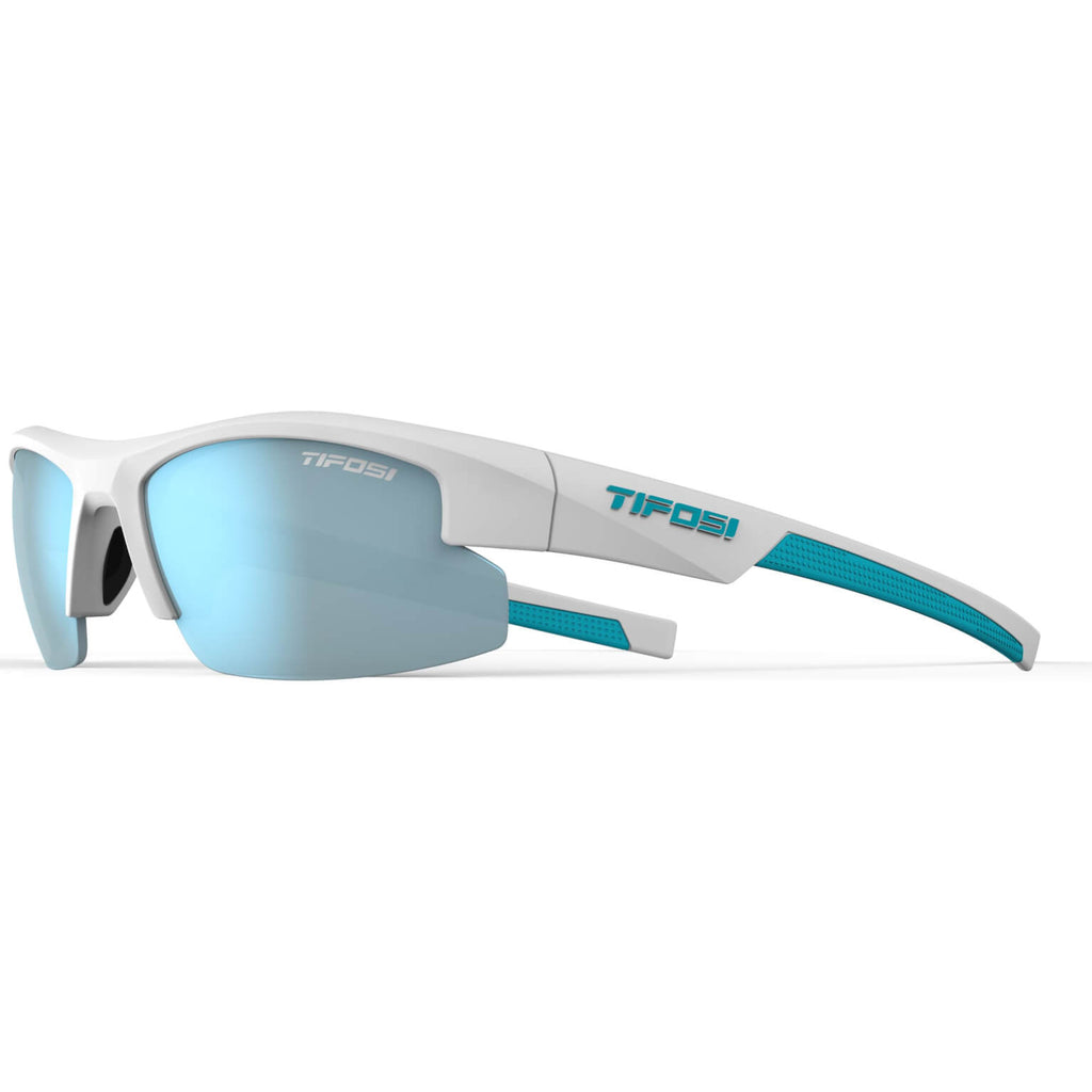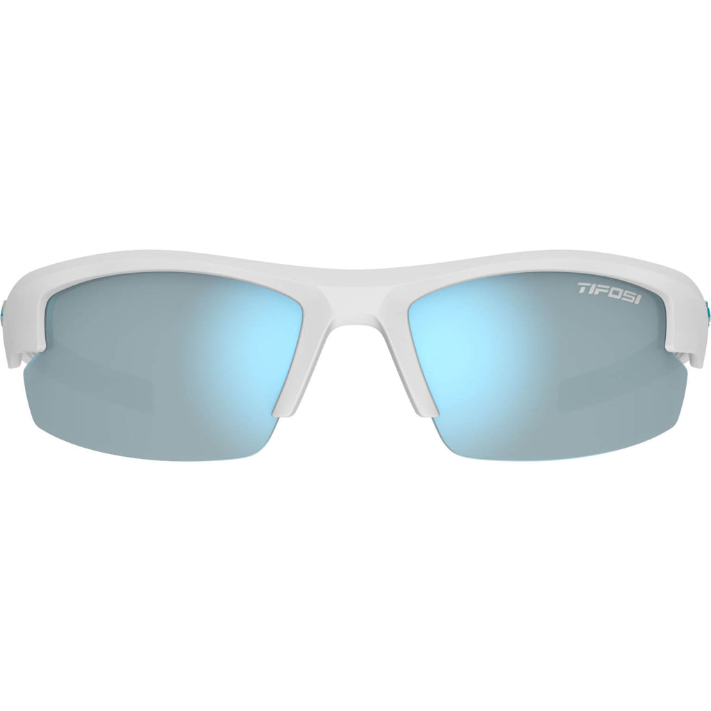 Tifosi bril ShutOut, kleur: wit met blauw. Geïntegreerd antisliprubber in de neusvleugels. Glazen zijn niet verwisselbaar. Glazen zijn krasbestendig. Maatvoering XS/S: geschikt voor kinderen/tieners/volwassenen met een klein hoofd. Lichtgewicht en duurzaam Nylon frame, 23 gram.