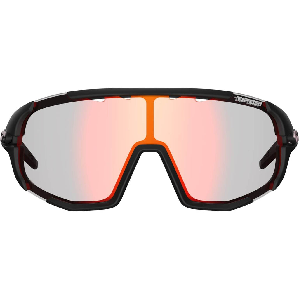 Tifosi bril Sledge, kleur: mat zwart, High speed rood fototec. Sterk TR-90 frame, antisliprubber op de verstelbare neusvleugels en pootjes. Voorzien van geventileerde fototec rode glazen: deze glazen passen zich aan de veranderende (weers)omstandigheden aan. Met de Fototec-lenzen heb je zowel in de volle zon als bij herfstachtig weer, altijd voldoende zicht.