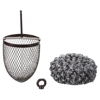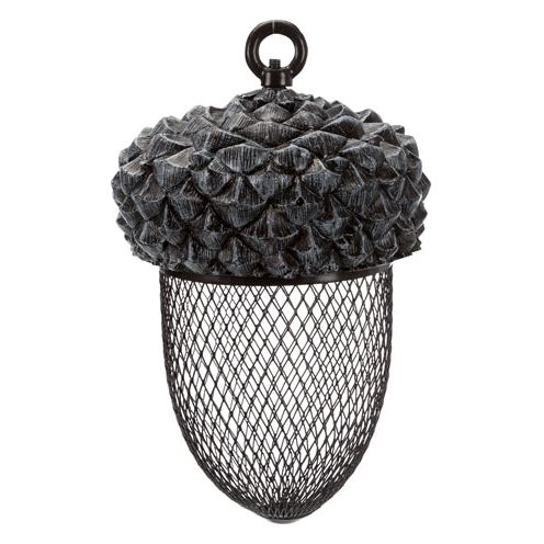 De van 14 x 14 x 22 cm is een leuke voersilo voor buiten in de vorm van een eikel met deksel van polyesterhars. Deze leuke voersilo past helemaal in jouw tuin en geeft je de gelegenheid noten en grof strooivoer aan te bieden aan buitenvogels. De silo is gemaakt van metaal met een afneembaar deksel van polyesterhars en is van boven te vullen. Deur de ring aan de bovenzijde kun je de silo makkelijk ophangen.