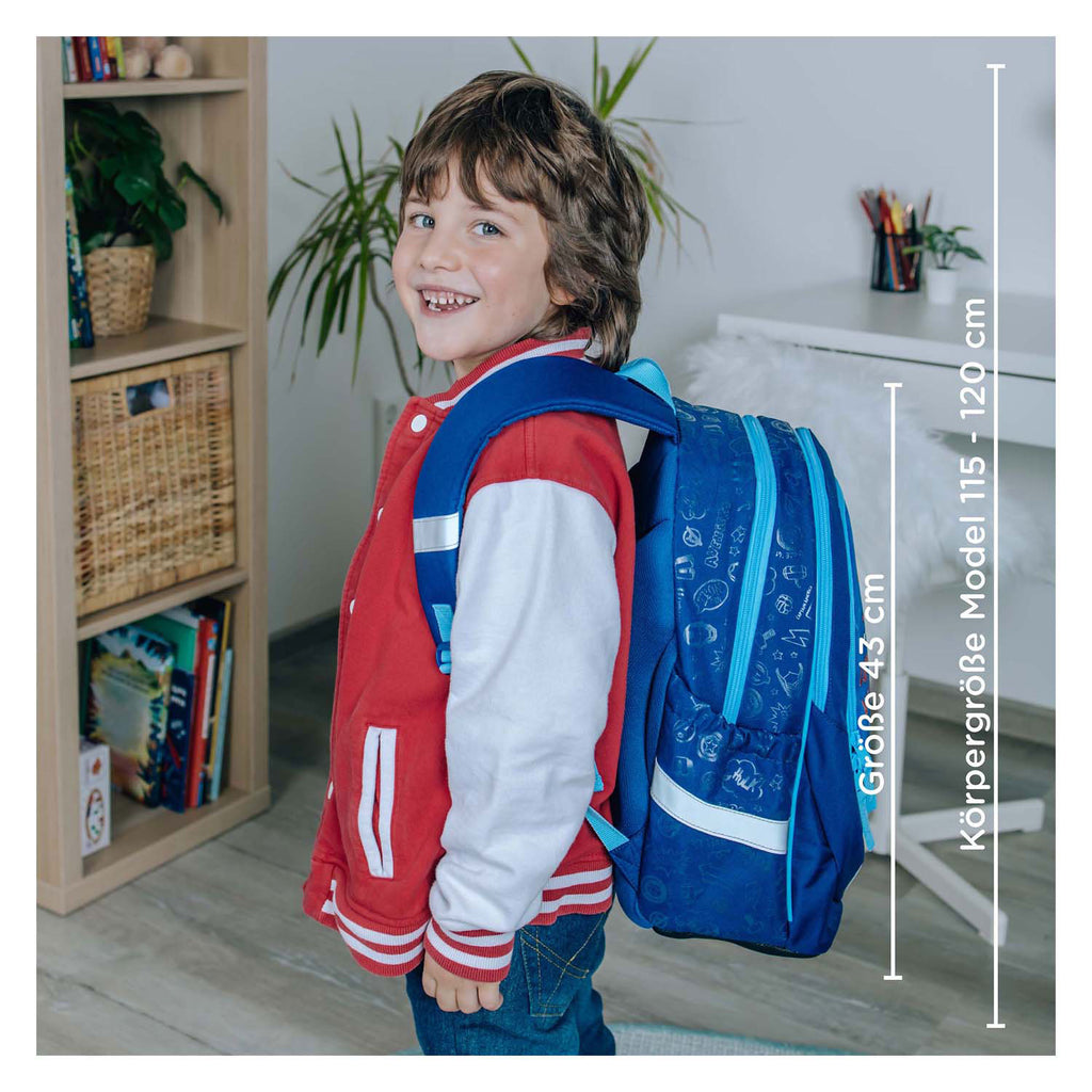Ergonomische Schoolrugzak Captain America met 2 grote hoofdvakken, 2 elastische zijvakken en een voorvak. De tas heeft reflecterende elementen en een verstevigde bodem. Afmetingen: 43 x 31 x 19 centimeter.