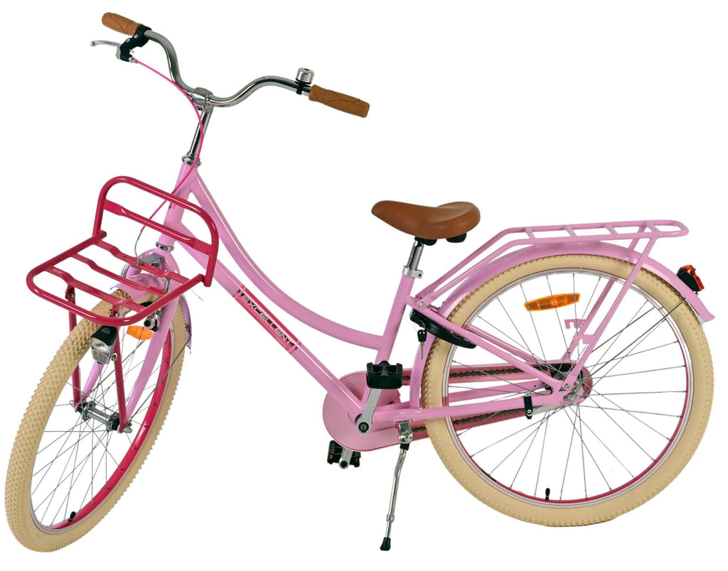 Ga stijlvol en goed vooraf het fietspad op met de Excellent kinderfiets van Volare. De lichtroze met bruine fiets heeft een toffe retro uitstraling. Weer helemaal van deze tijd! Deze 24 inch meisjesfiets is een solide basis voorzien van alle specificaties voor jouw fietsavonturen.